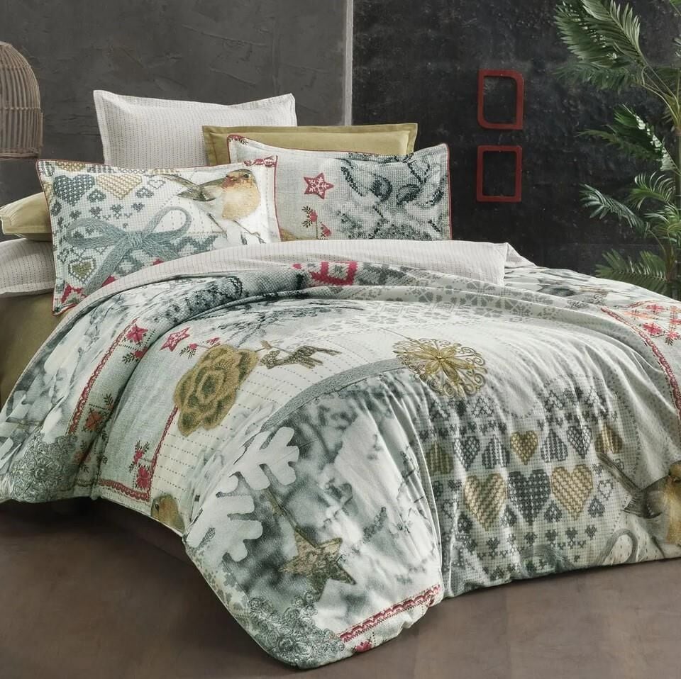 Sarev Kaje Flanel Nevresim Takımı Beyaz Çift Kişilik
