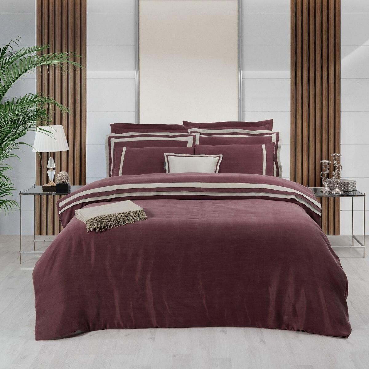 Sarev Kımera Cupro Nevresim Takımı Çift Kişilik 4 Yastık Bordo