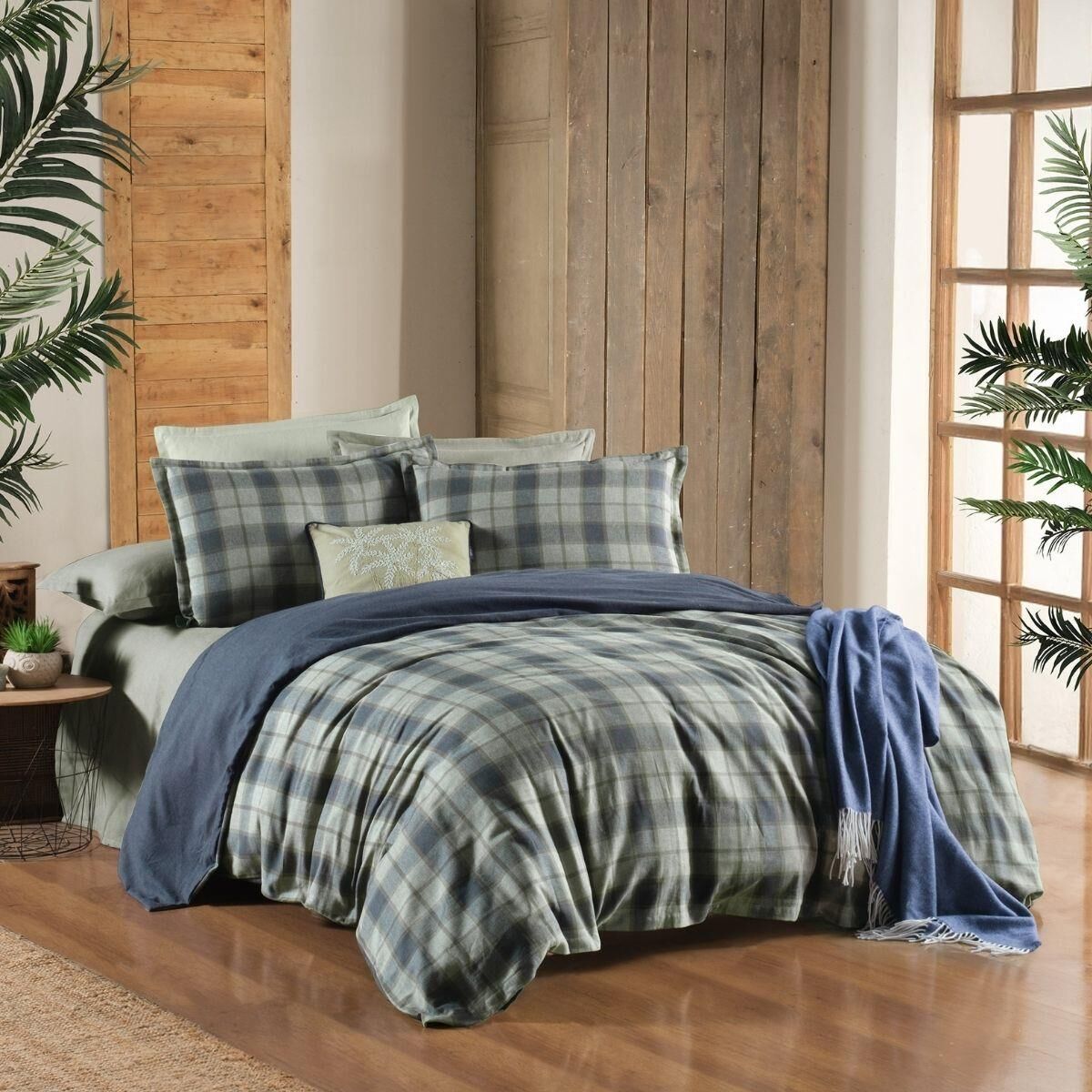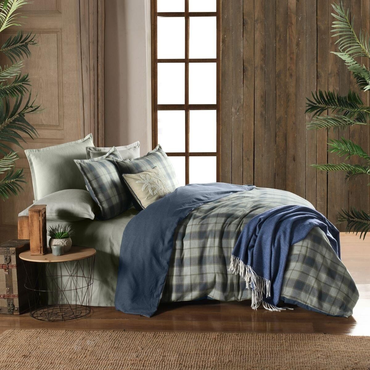 Sarev Kınross Flanel Prıme Nevresim Takımı Çift Kişilik 2 Yastık Haki
