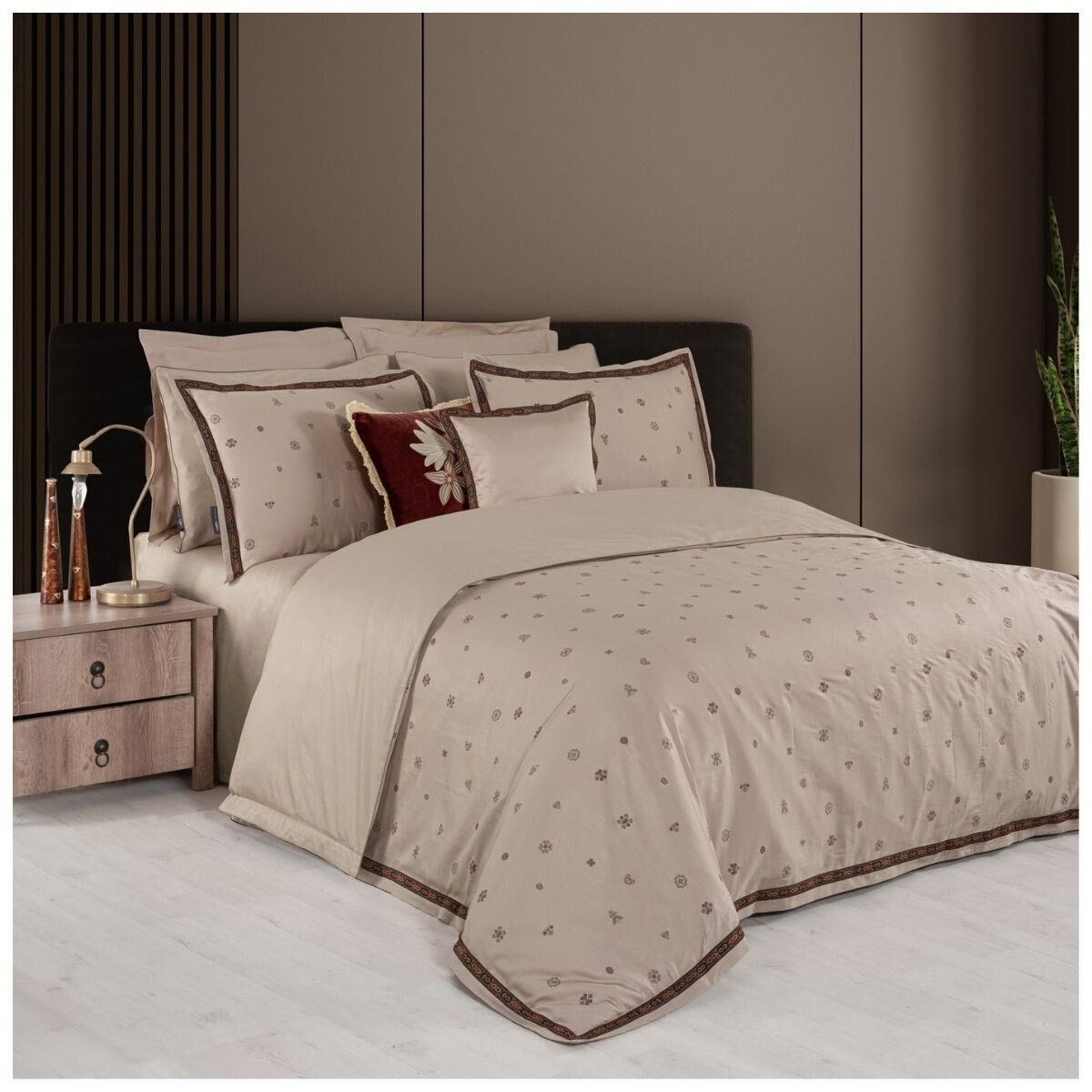Sarev Kutay Saten Nevresim Takımı Çift Kişilik 4 Yastık Mocha