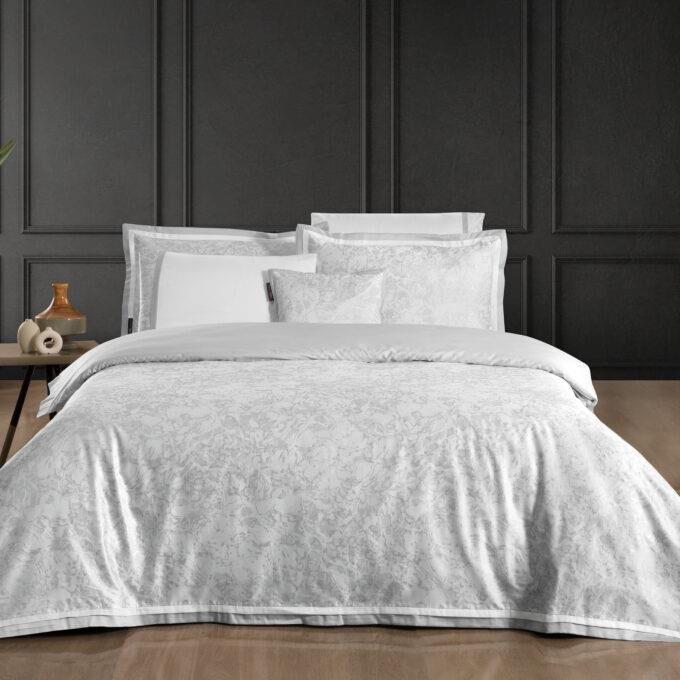Sarev Laney Saten Nevresim Takımı Çift Kişilik 4 Yastık Gri