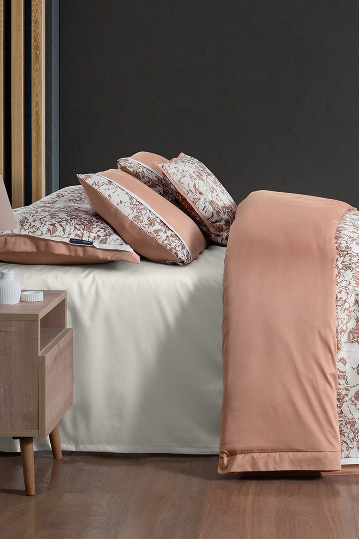 Sarev Laney Saten Nevresim Takımı Çift Kişilik 4 Yastık Taba