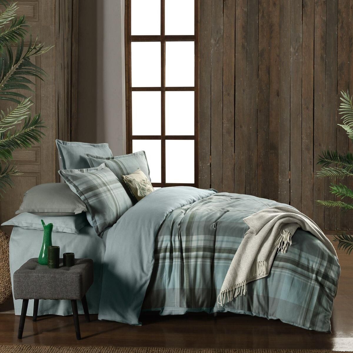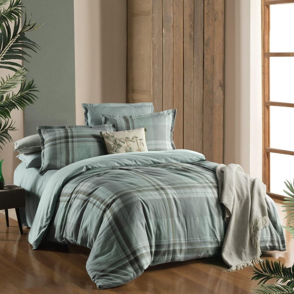 Sarev Lauder Flanel Prıme Nevresim Takımı Çift Kişilik 2 Yastık Yeşil