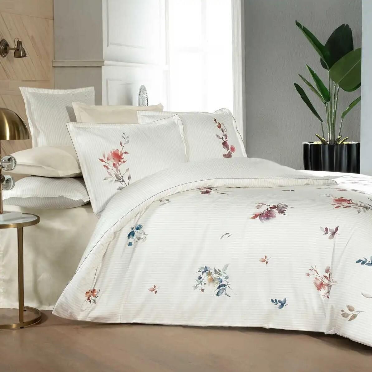 Sarev Lida Saten Nevresim Takımı Çift Kişilik 4Yastık-Bej