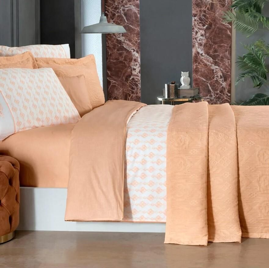 Sarev Mahavi Yatak Örtüsü Ve Nevresim Takımı Turuncu Çift Kişilik
