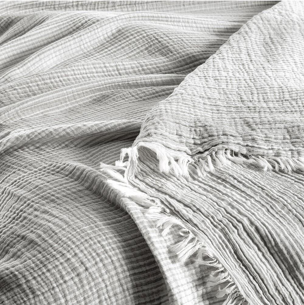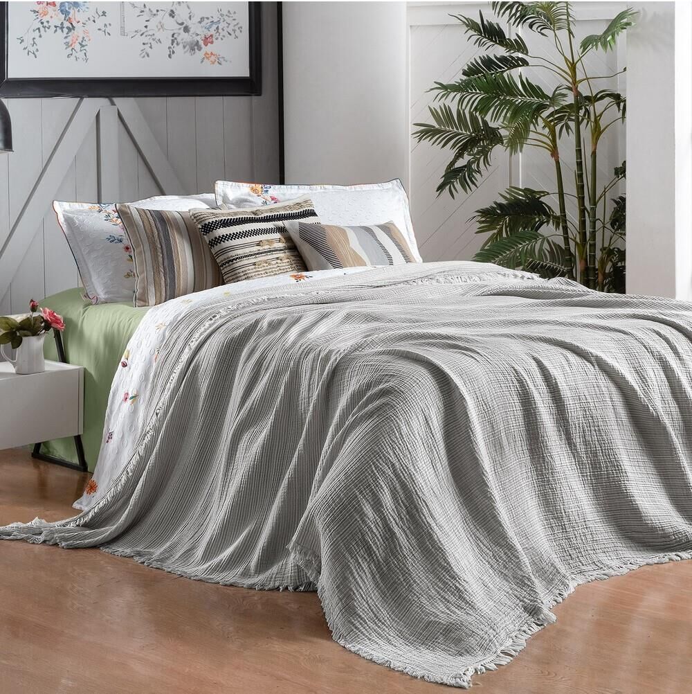 %100 Pamuk , jakarlı, ipliği boyalı, müslin yıkamalı yatak örtüsü.