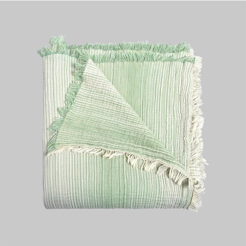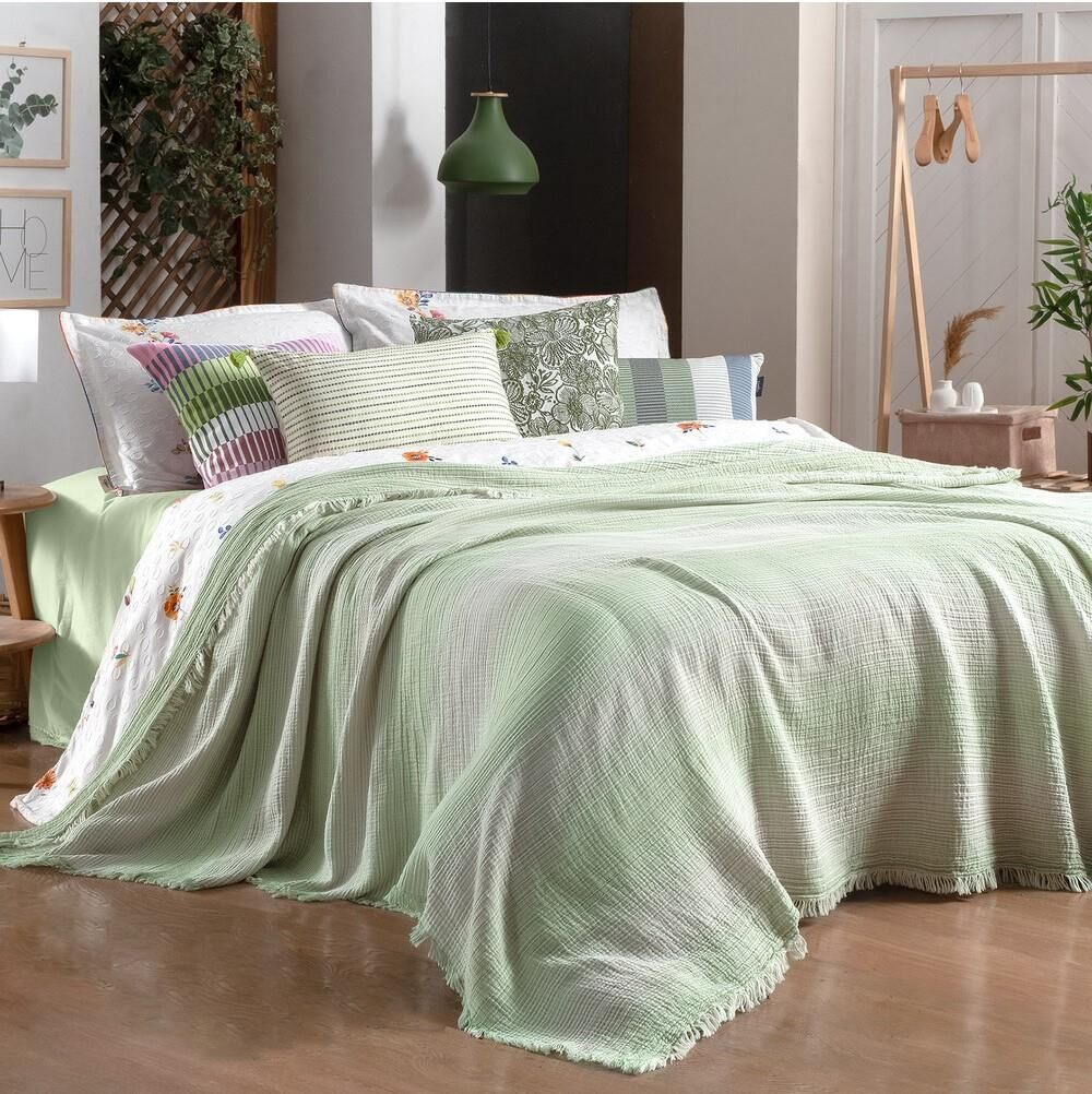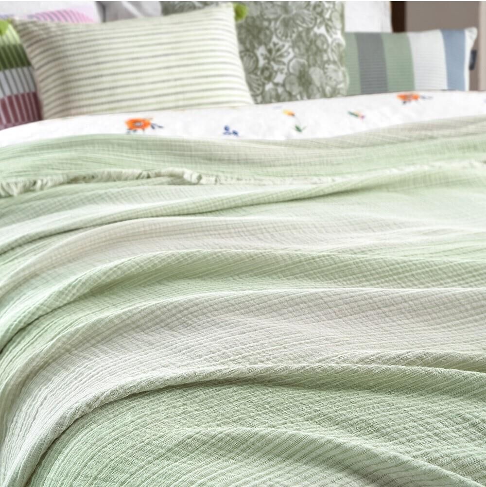 %100 Pamuk , jakarlı, ipliği boyalı, müslin yıkamalı yatak örtüsü.