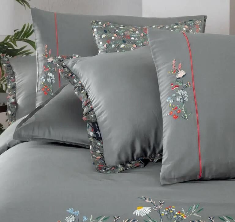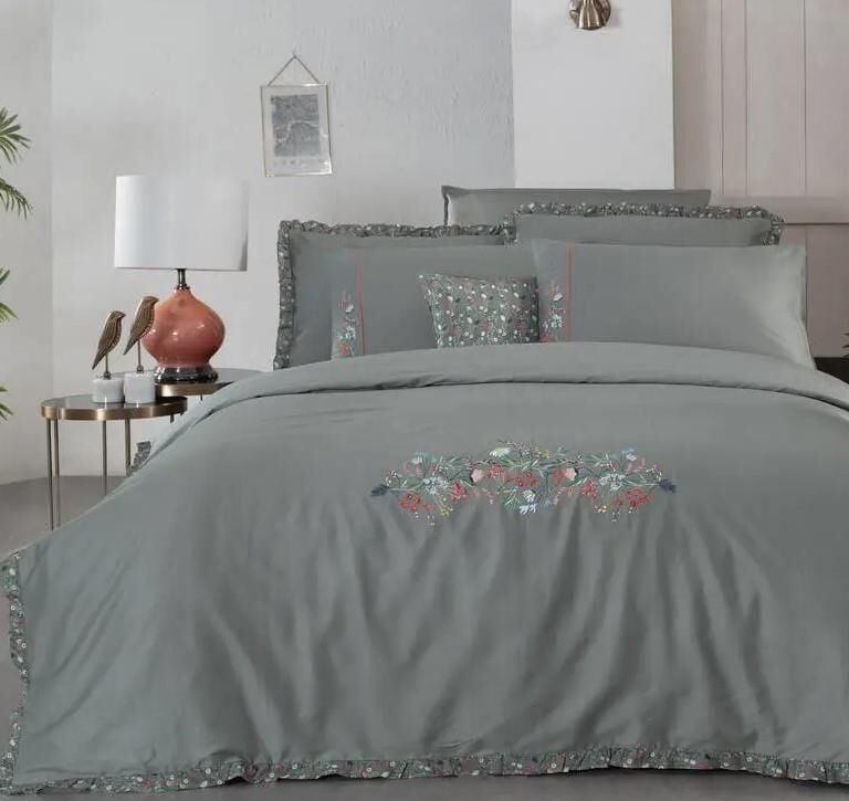 Sarev Nitra Saten Nevresim Takımı Çift Kişilik 4 Yastık-Gri