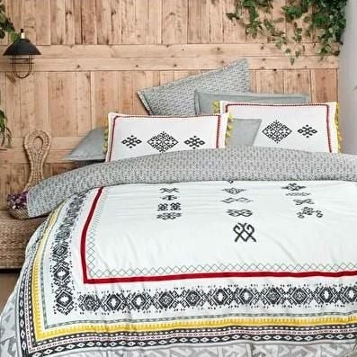 Sarev Oghuz Fancy Poplin Nevresim Takımı Gri Çift Kişilik