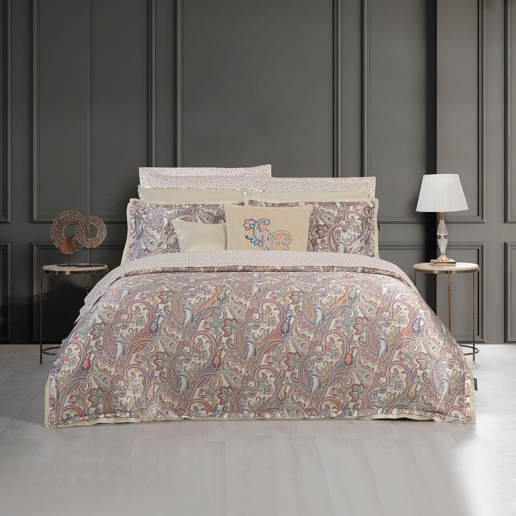 Sarev Orion %100 İpek Saten Nevresim Takımı Çift Kişilik 4 Yastık-Ekru