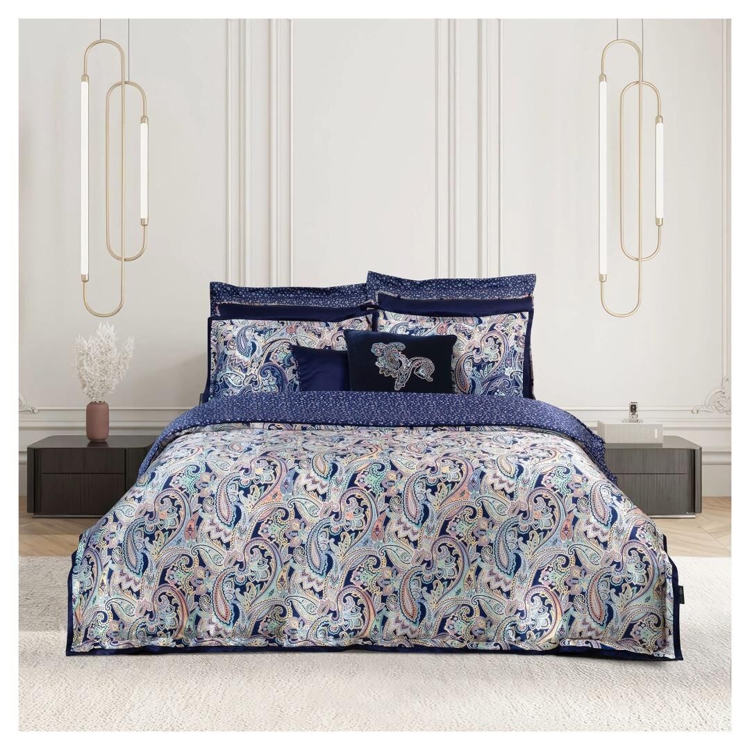 Sarev Orion %100 İpek Saten Nevresim Takımı Çift Kişilik 4 Yastık-Lacivert
