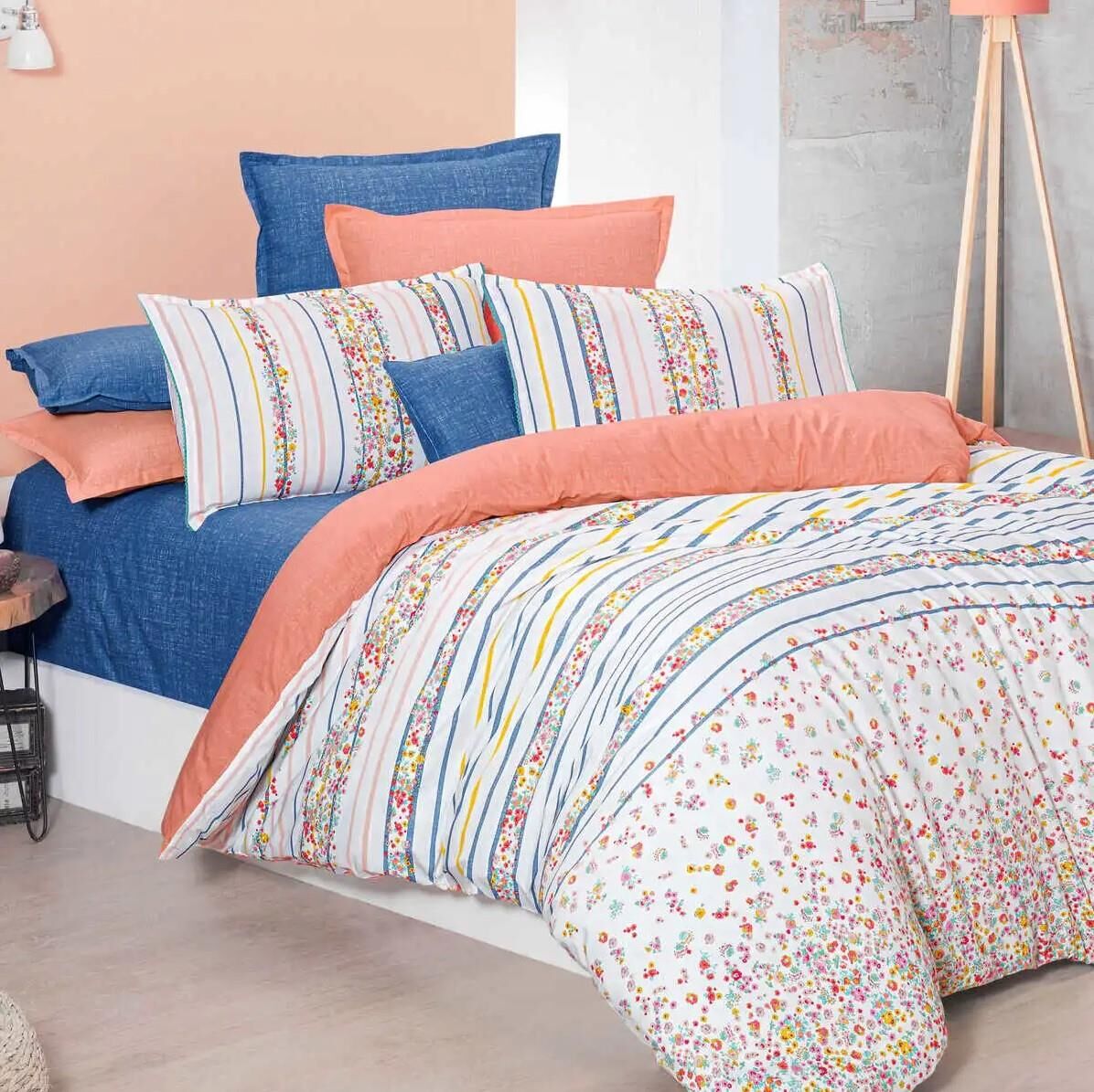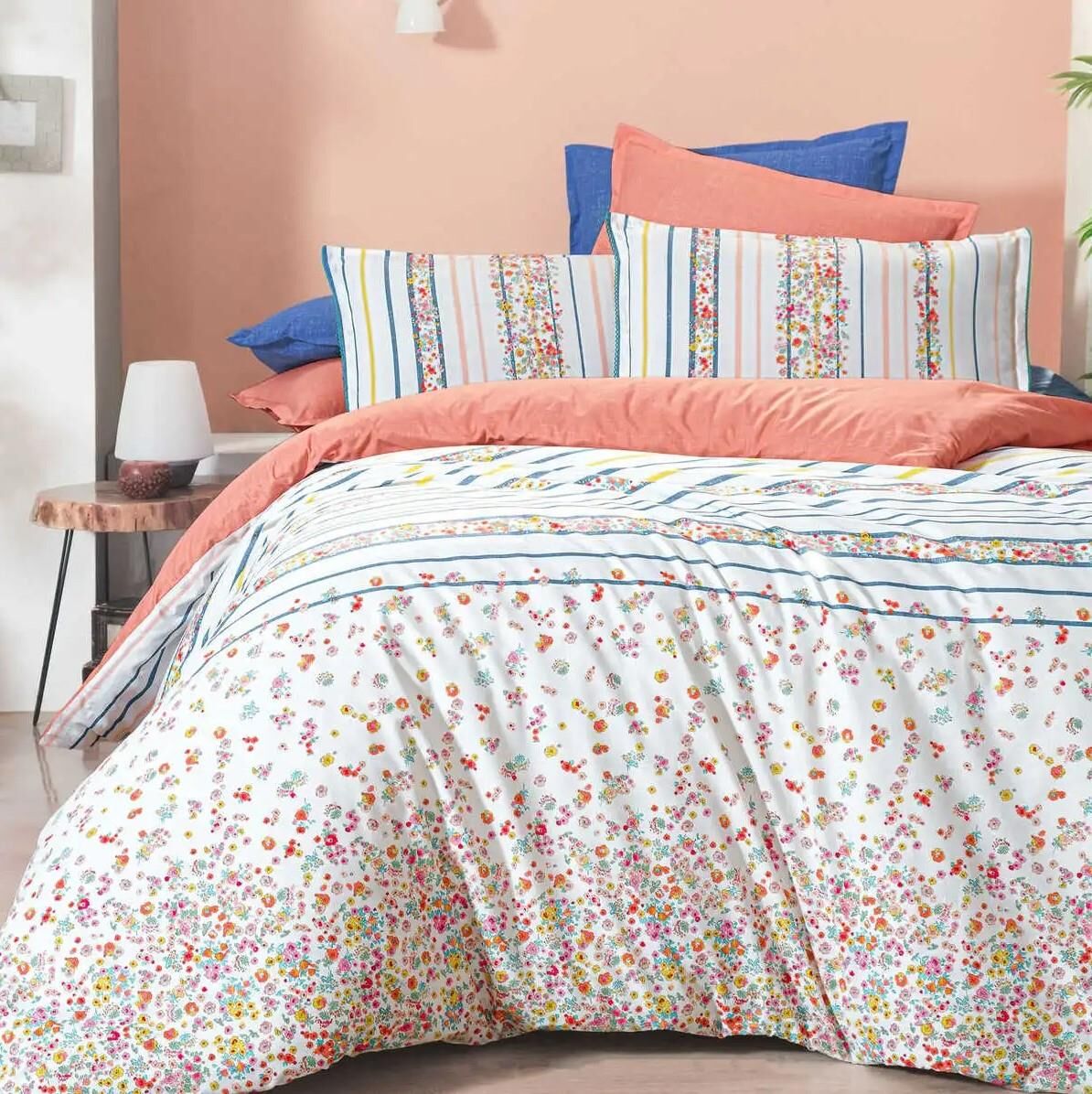 Sarev Ovi Fancy Poplin Nevresim Takımı Somon Çift Kişilik