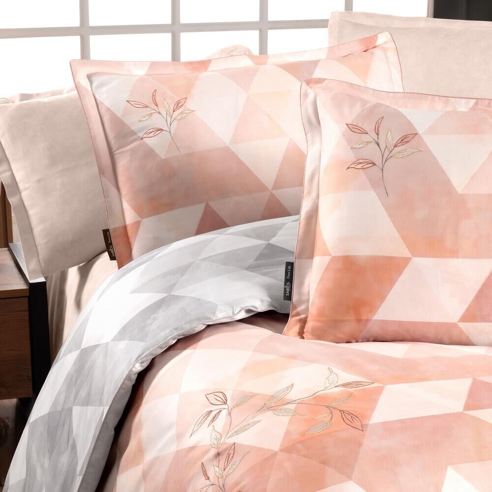 Sarev Peonia Saten Nevresim Takımı Çift Kişilik 4 Yastık Taba
