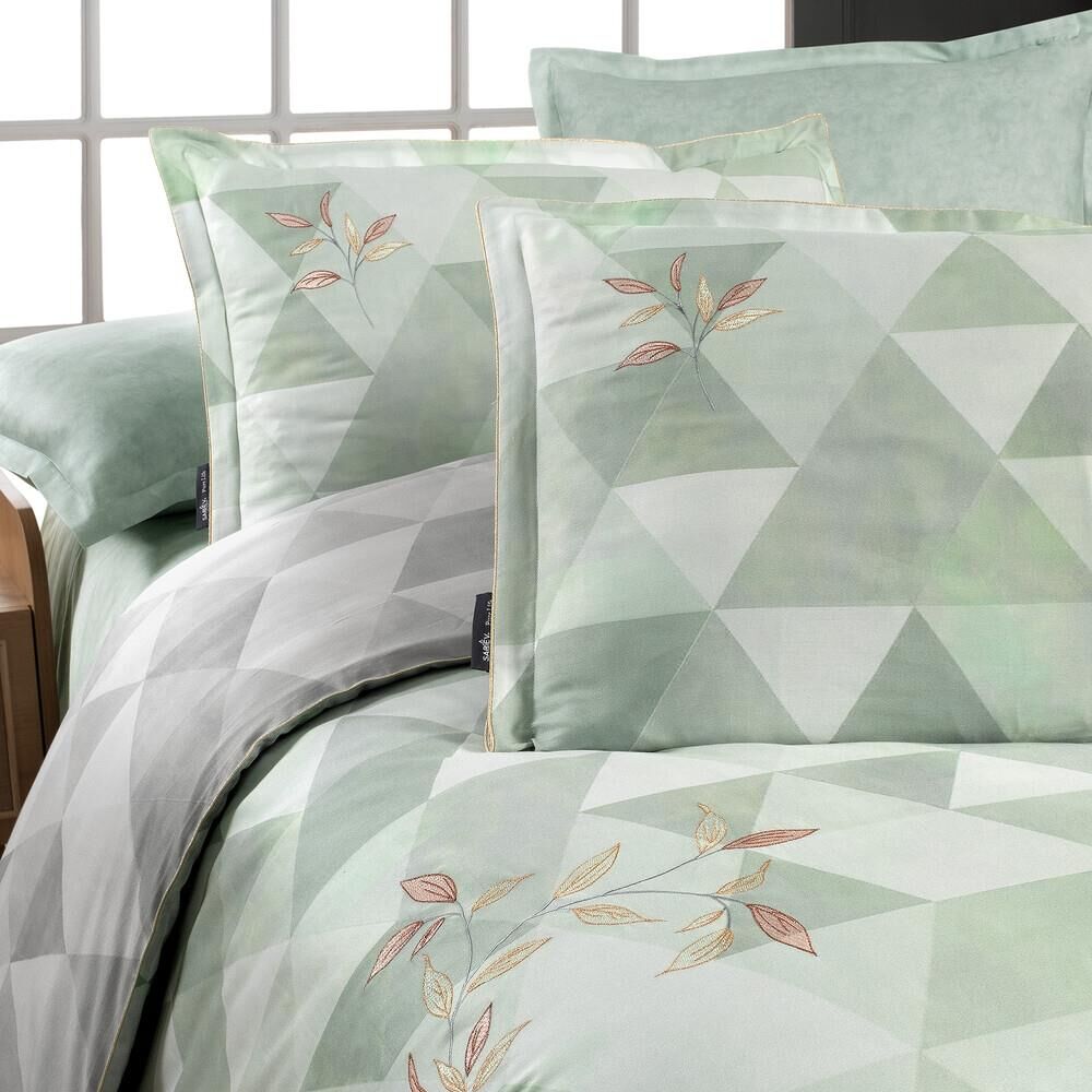 Sarev Peonia Saten Nevresim Takımı Çift Kişilik 4 Yastık Yeşil
