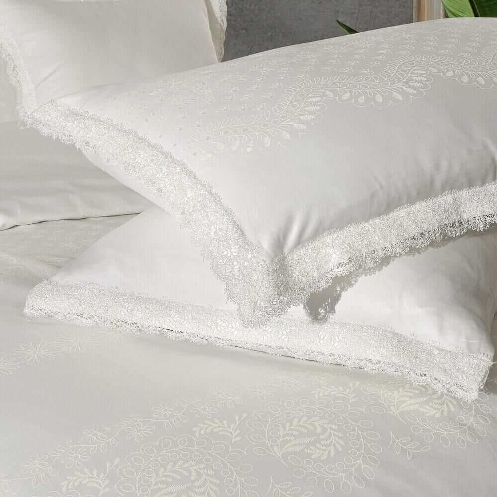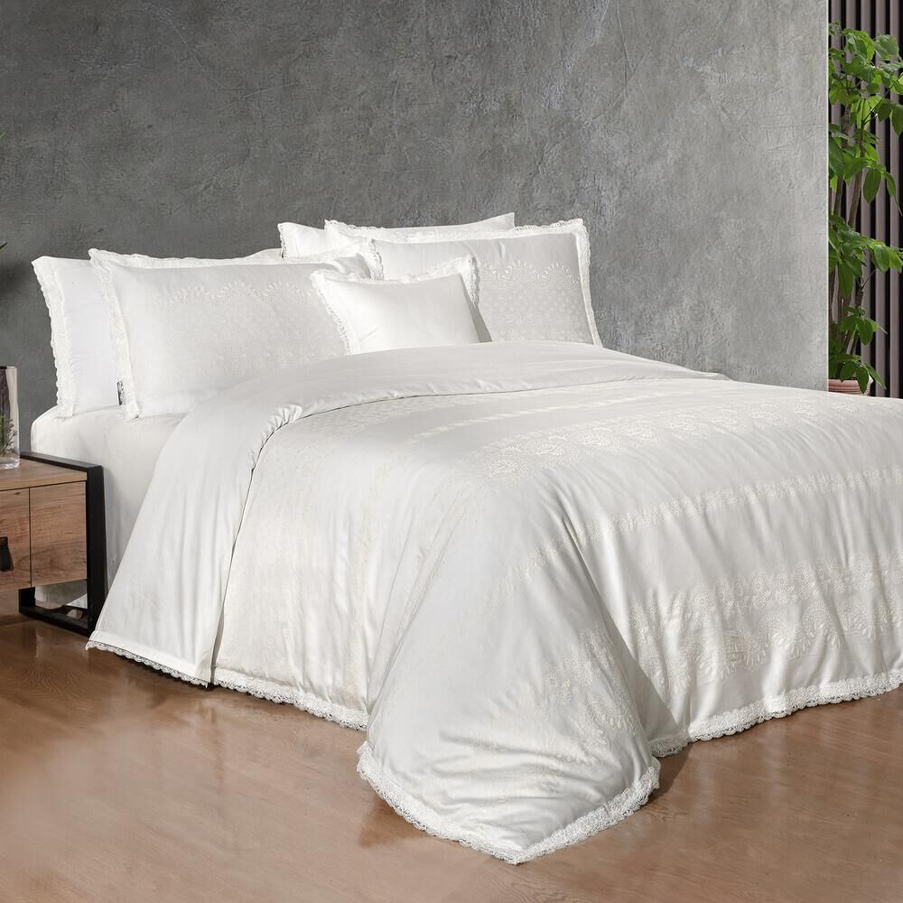 Sarev Perry Saten Nevresim Takımı Çift Kişilik 4 Yastık Beyaz