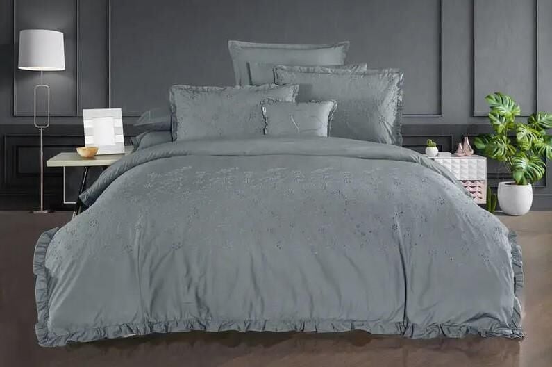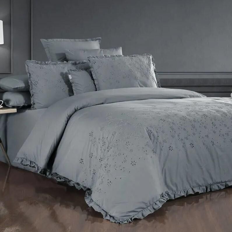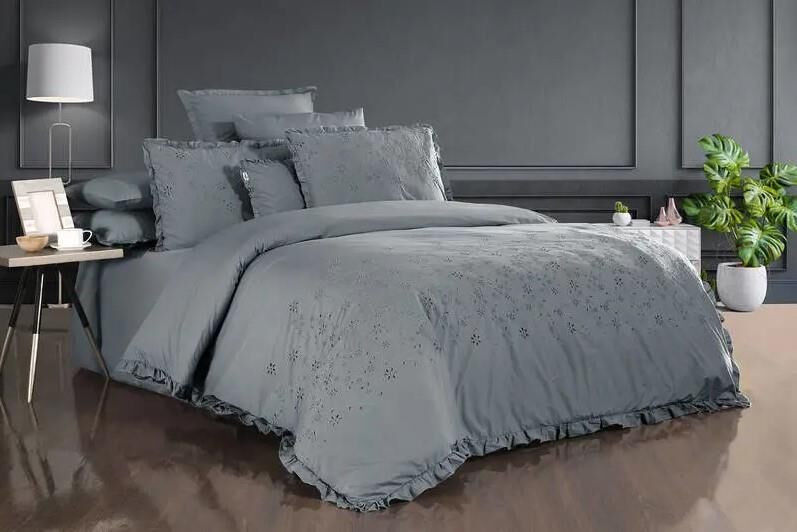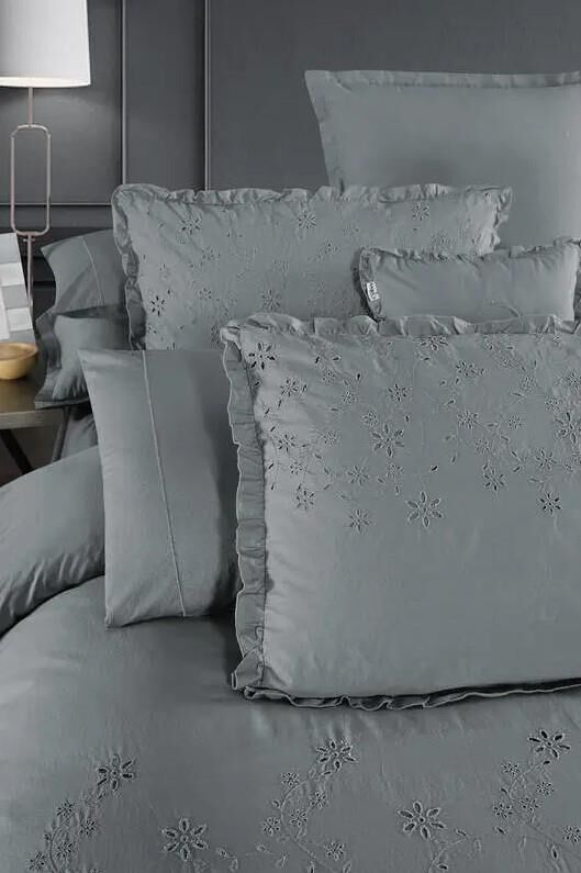 Sarev Peste Percale Nevresim Takımı Gri Çift Kişilik