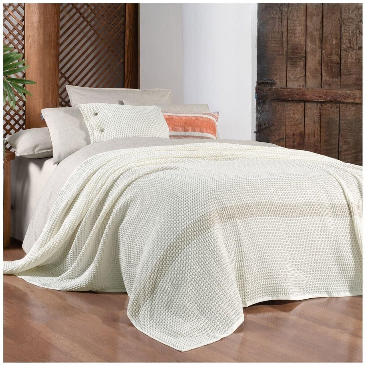 Sarev Polendıa Yatak Örtüsü Çift Kişilik Ekru