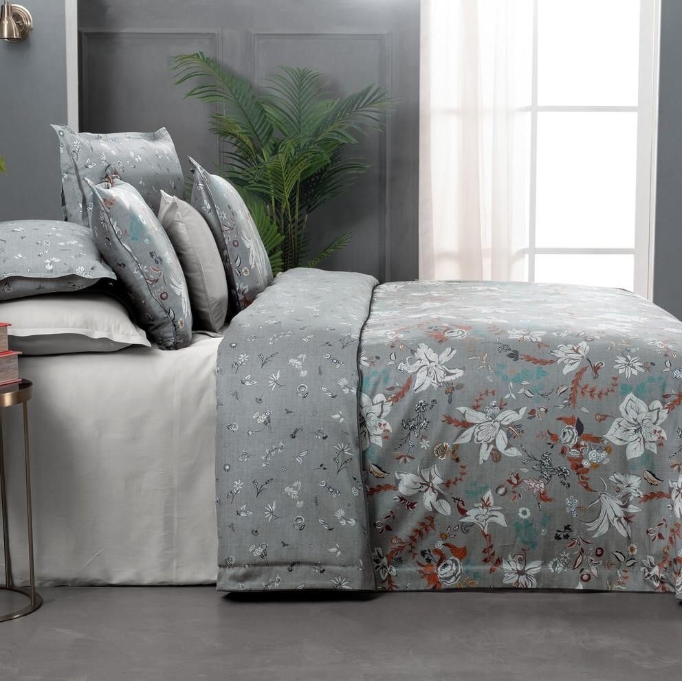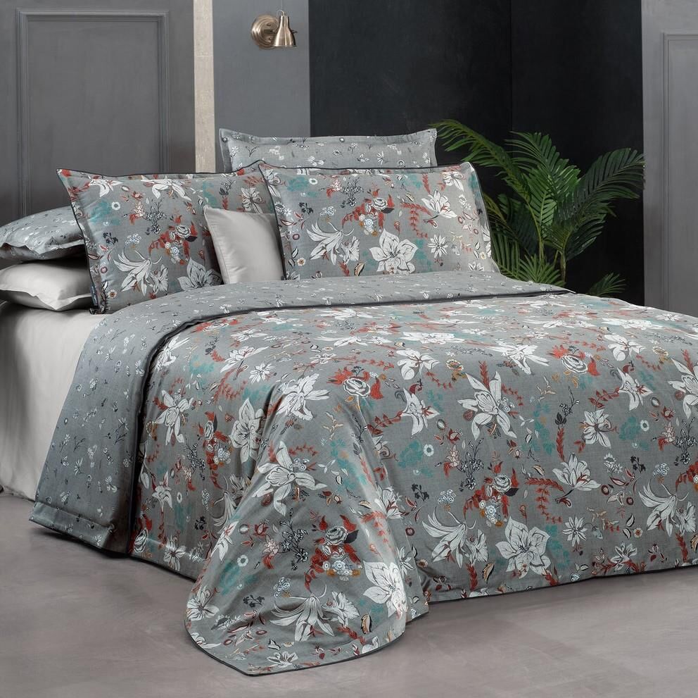 Sarev Portlan Saten Nevresim Takımı Çift Kişilik 4 Yastık-Gri