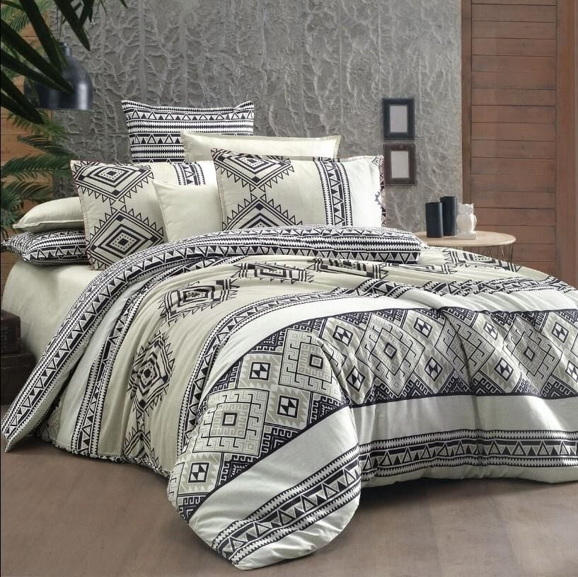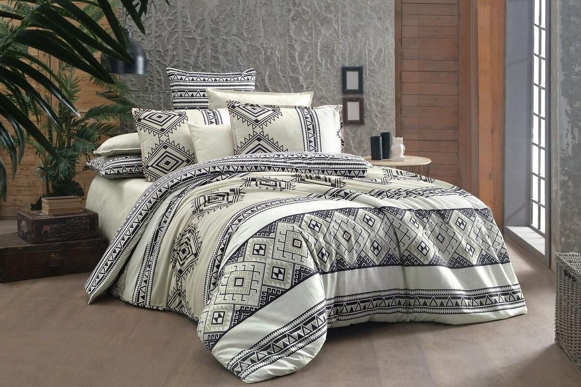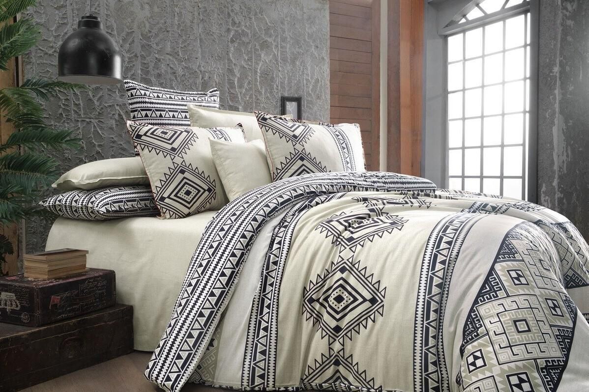 Sarev Runa Fancy Poplin Nevresim Takımı Bej Çift Kişilik