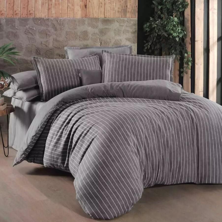 Sarev Sandro Flanel Nevresim Takımı Gri Çift Kişilik