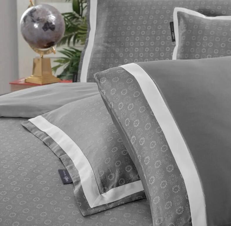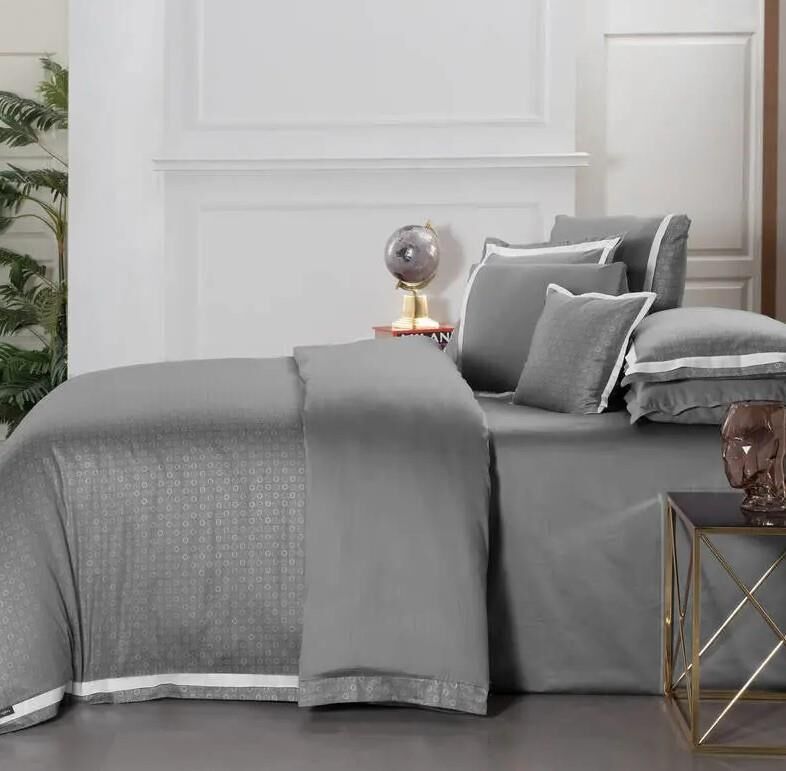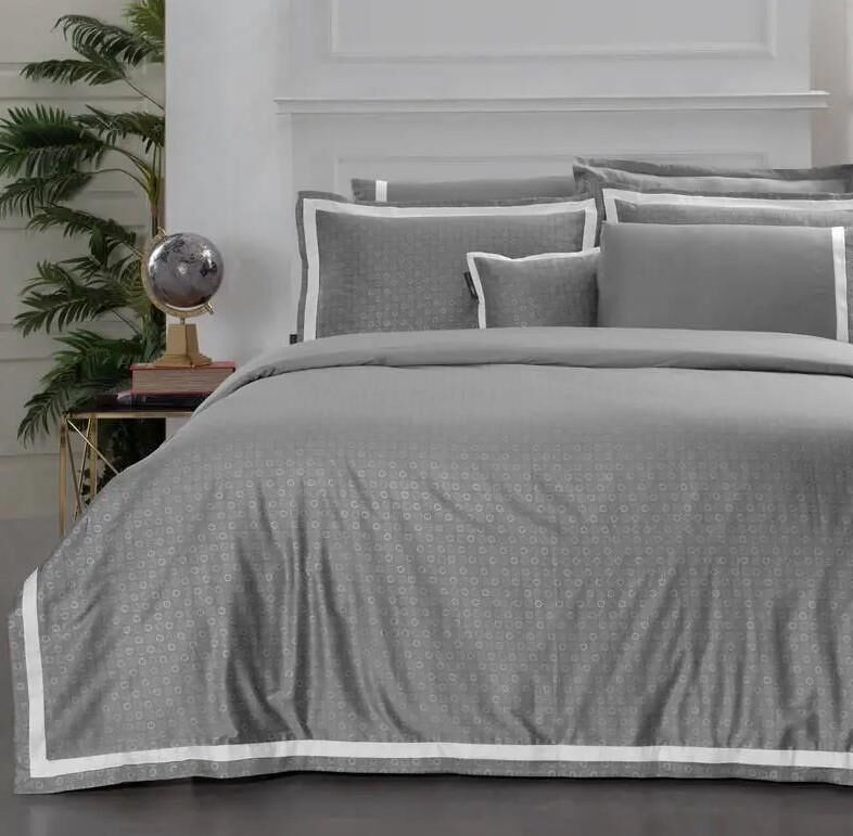 Sarev Sarov Saten Nevresim Takımı Çift Kişilik 4 Yastık-Gri