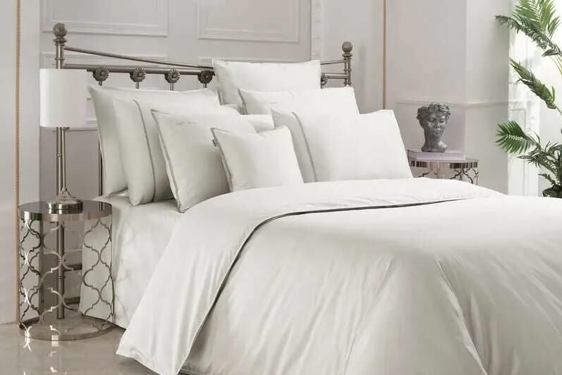 Sarev Sartoria Saten Nevresim Takımı Ekru Çift Kişilik