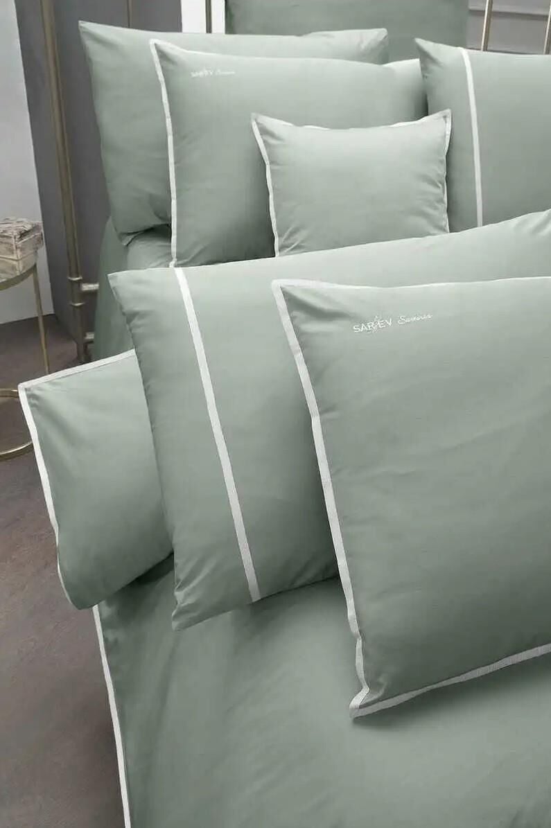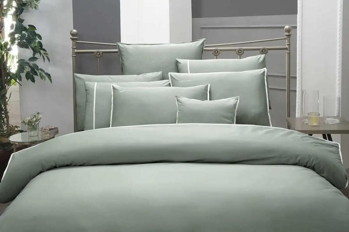 Sarev Sartoria Saten Nevresim Takımı Yeşil Çift Kişilik