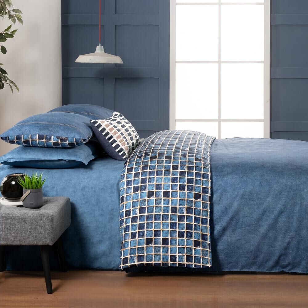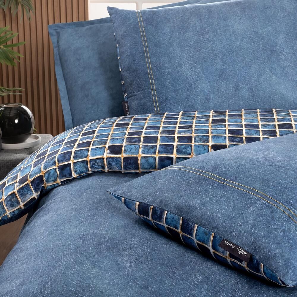 Sarev Sensal Saten Nevresim Takımı Çift Kişilik 4 Yastık İndigo
