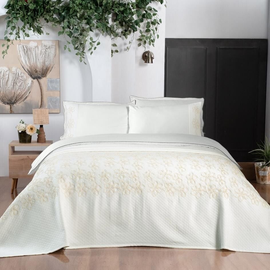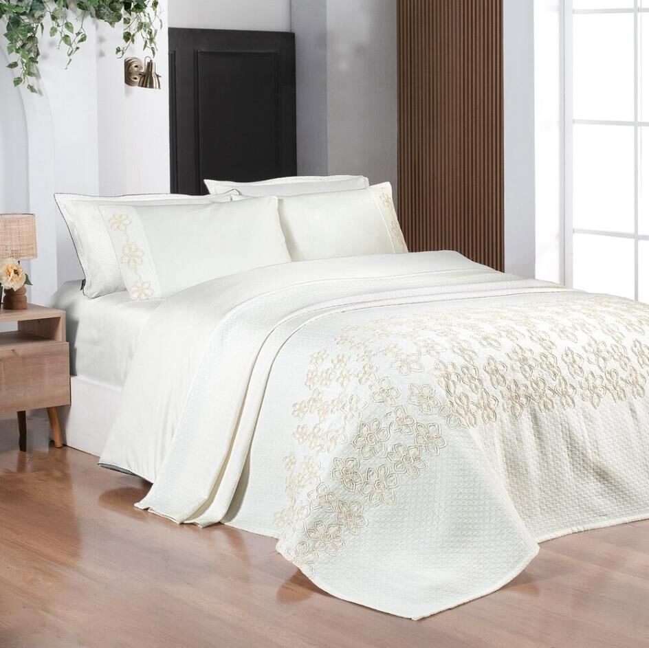 Sarev Shida Havlulu Wedding Pike Seti Çift Kişilik Ekru