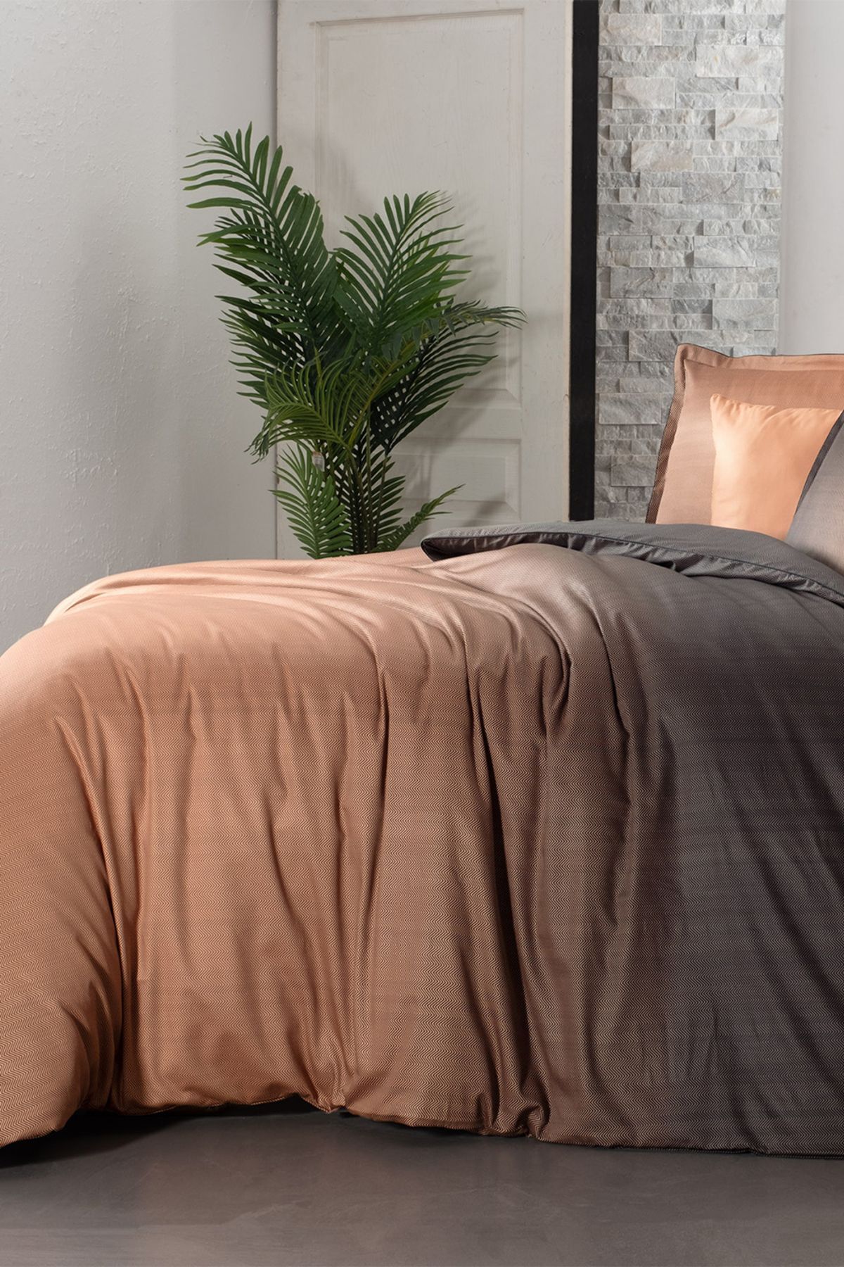 Sarev Solido Saten Nevresim Takımı Çift Kişilik 4 Yastık-Taba