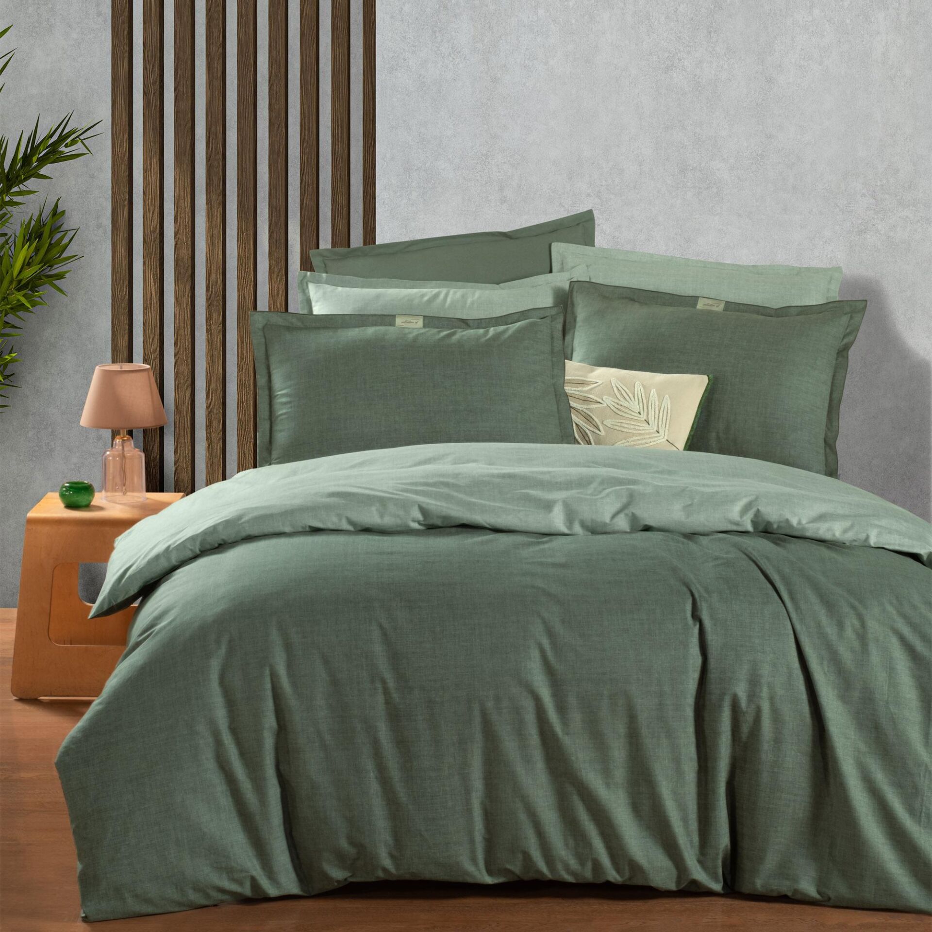 Minimal desenli “Solo Tone” tasarımı, yatak odanıza sakin bir atmosfer katarken, yeşil, gri ve nötr tonlarla modern iç mekanlara kolayca uyum sağlar.