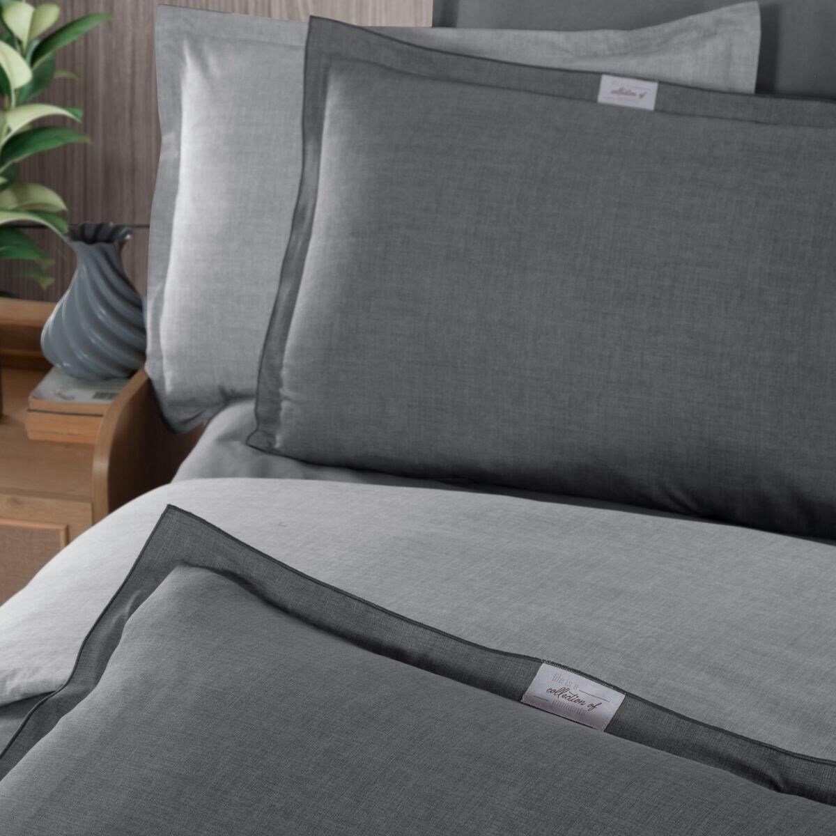 Sarev Solo Tone Rnf Nevresim Takımı Çift Kişilik 2 Yastık Gri