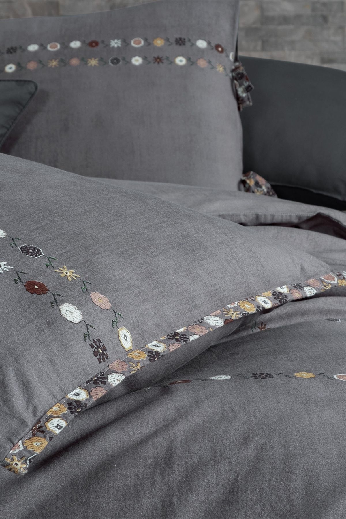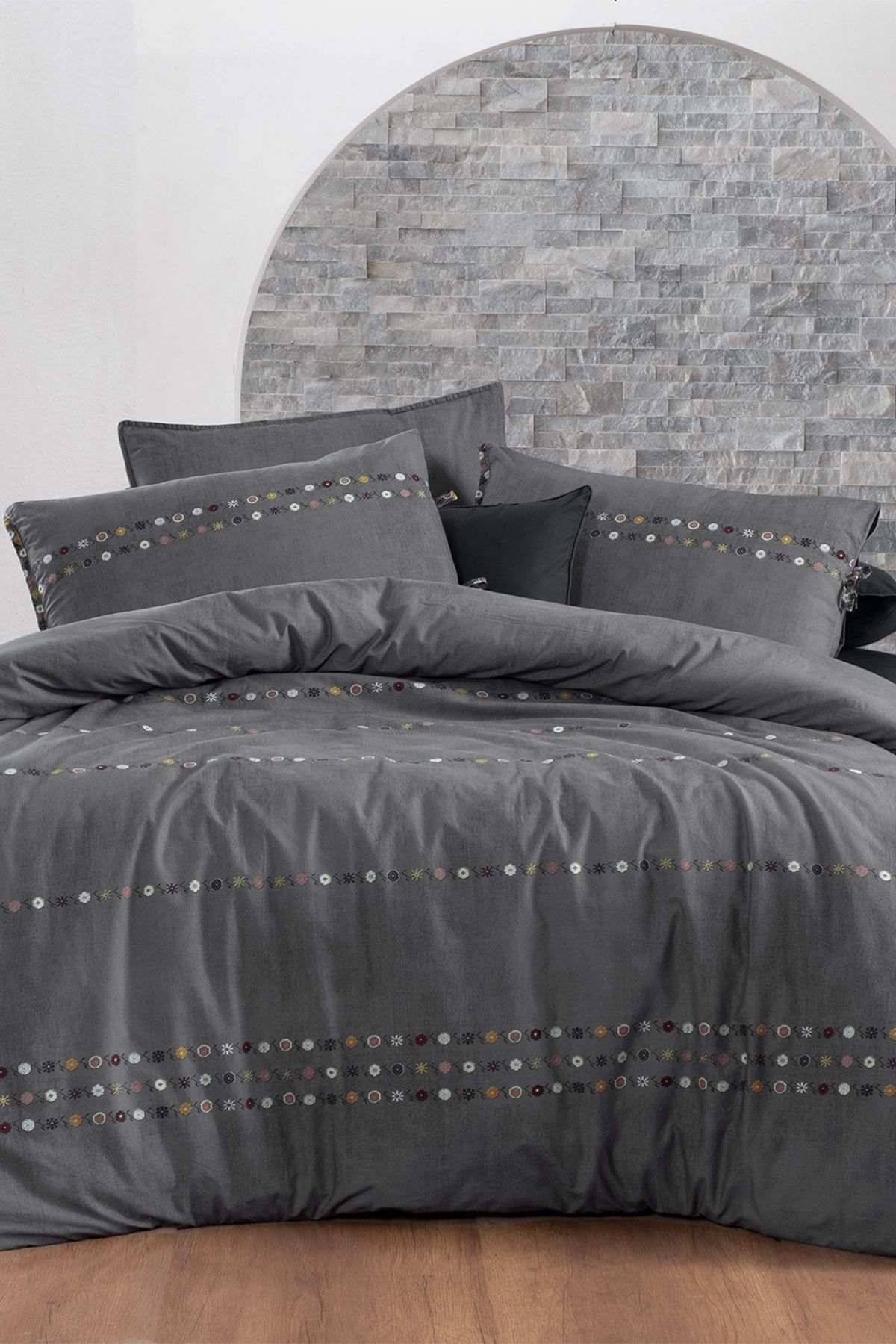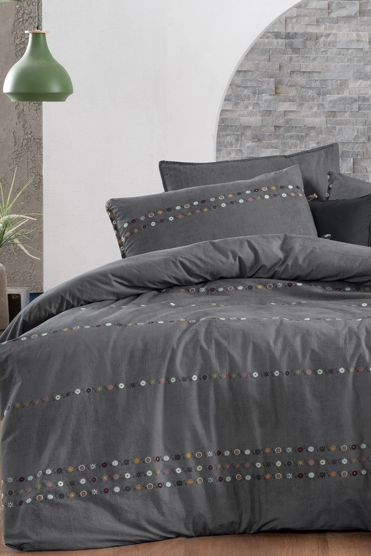 Sarev Tanya Fancy Poplin Nevresim Takımı Çift Kişilik 2 Yastık-Gri
