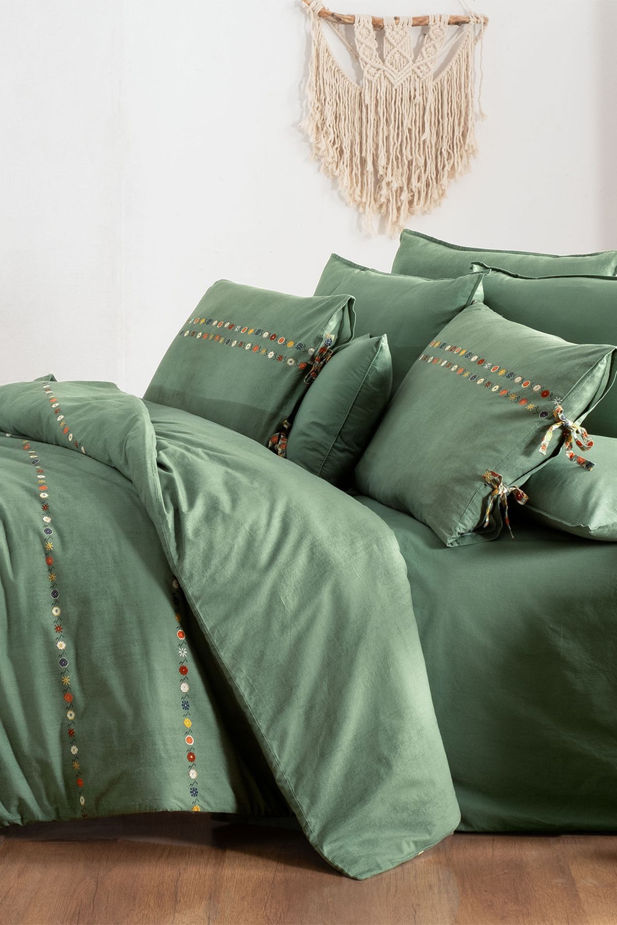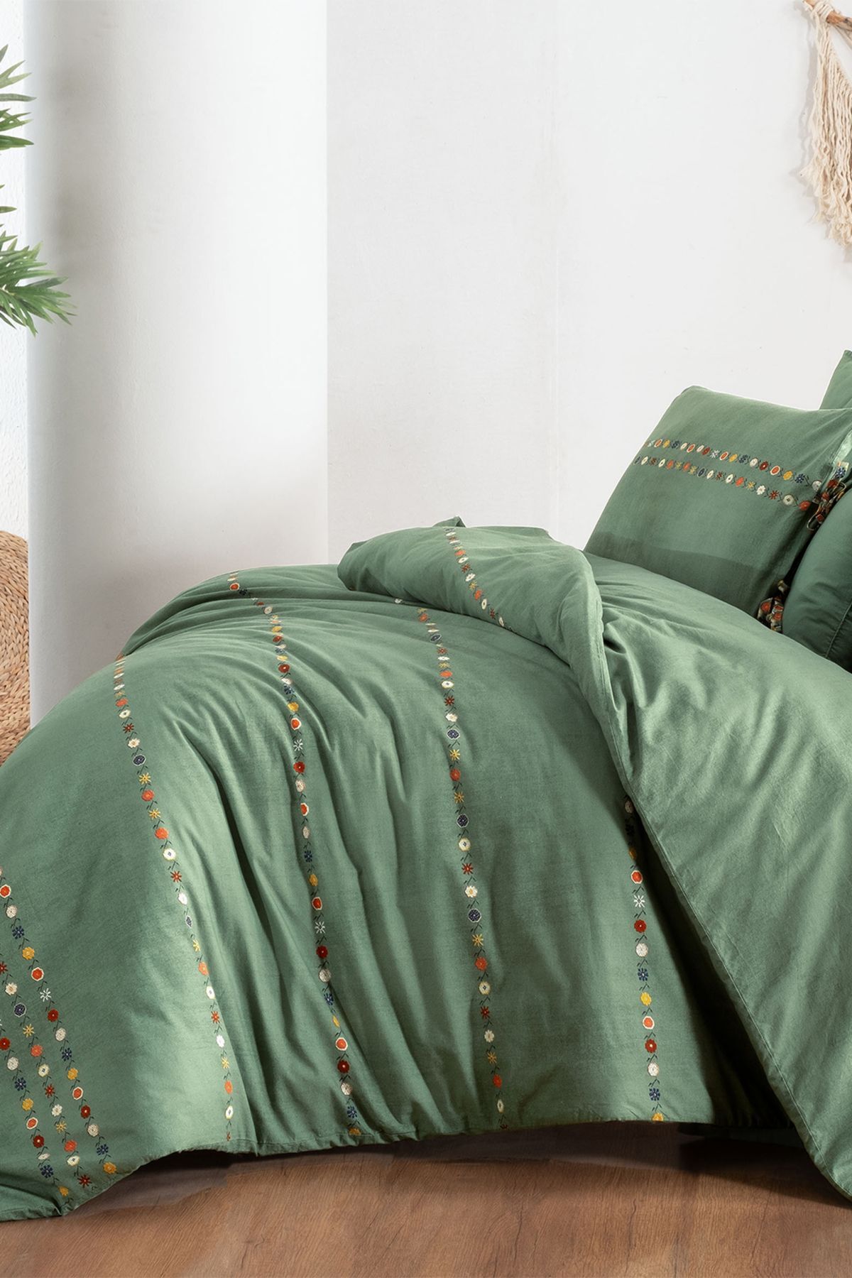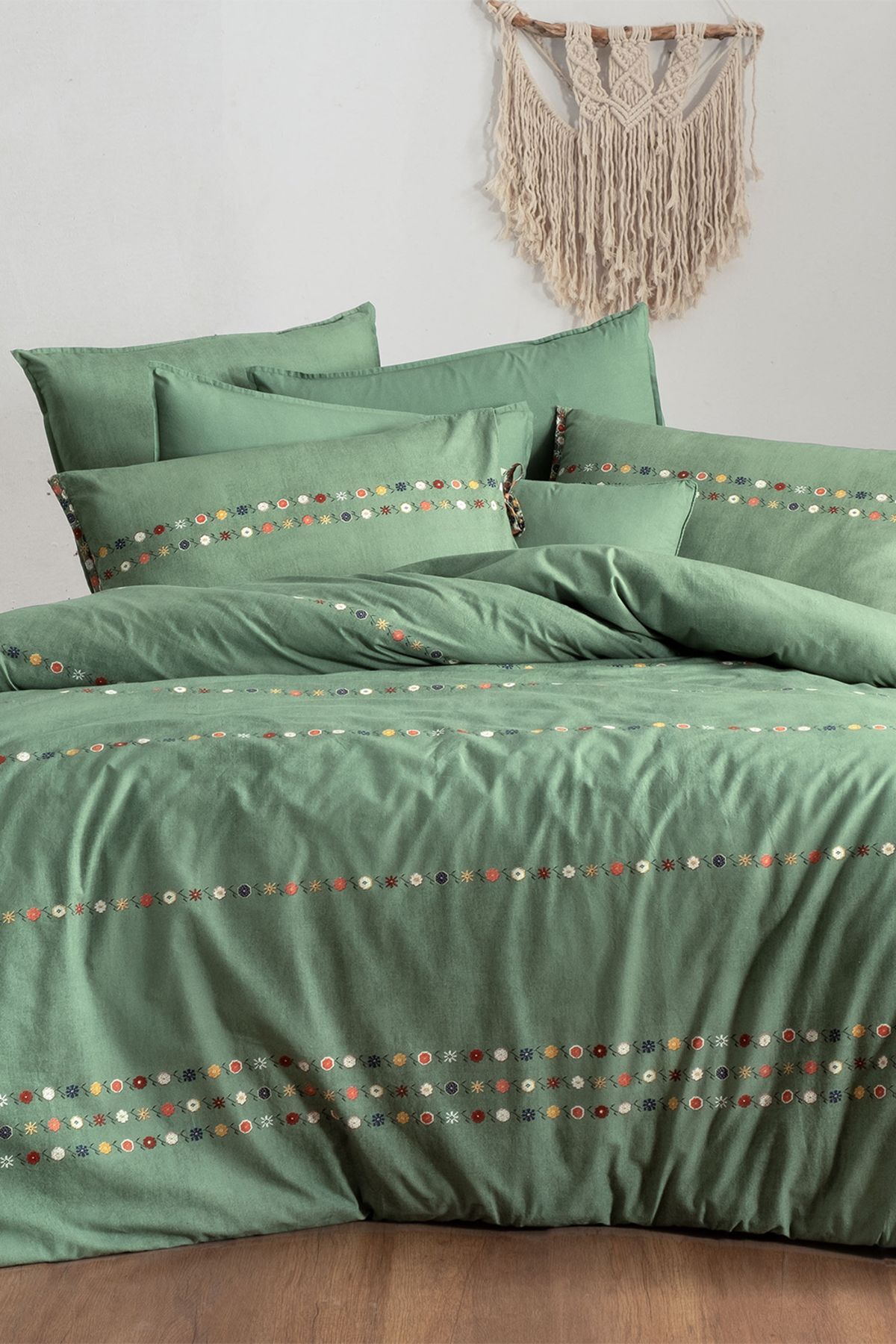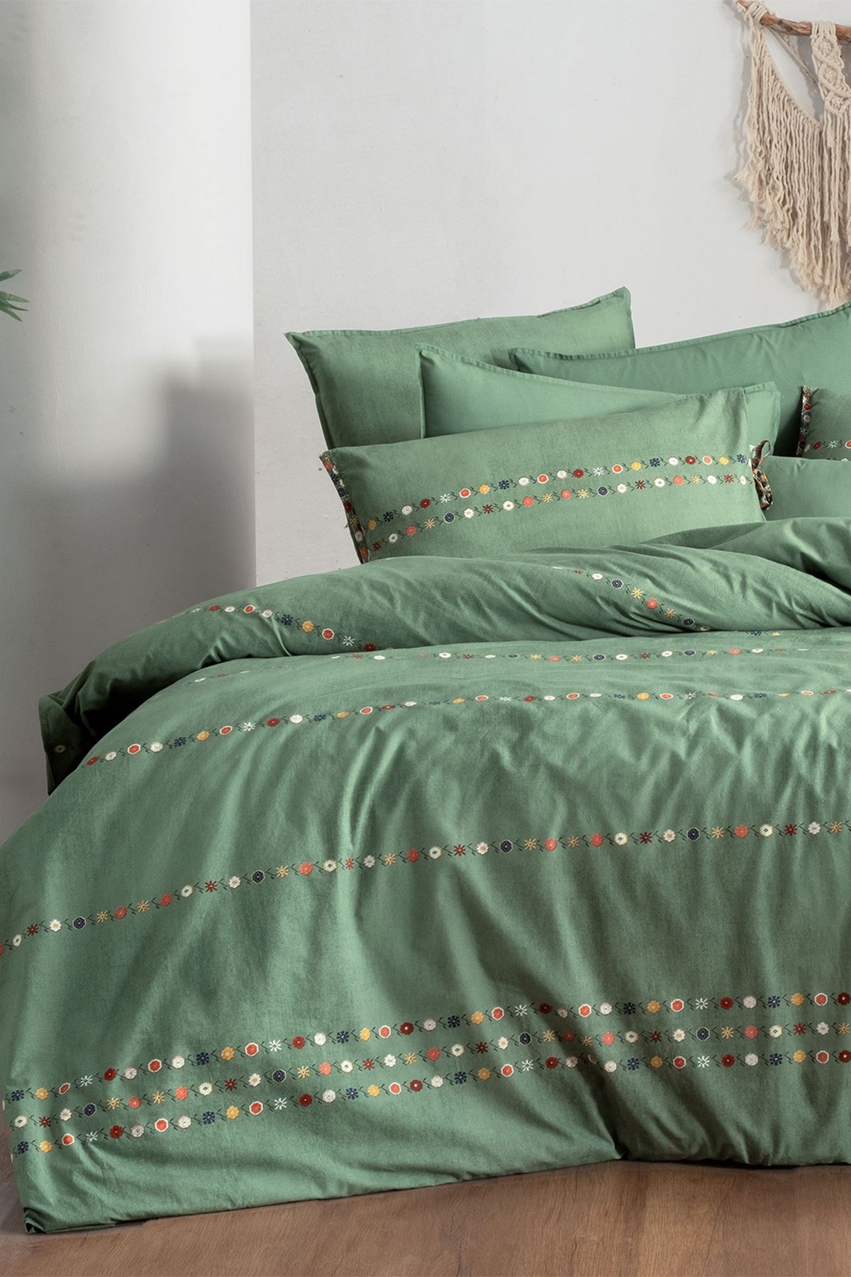 Sarev Tanya Fancy Poplin Nevresim Takımı Tek Kişilik 1 Yastık-Yeşil