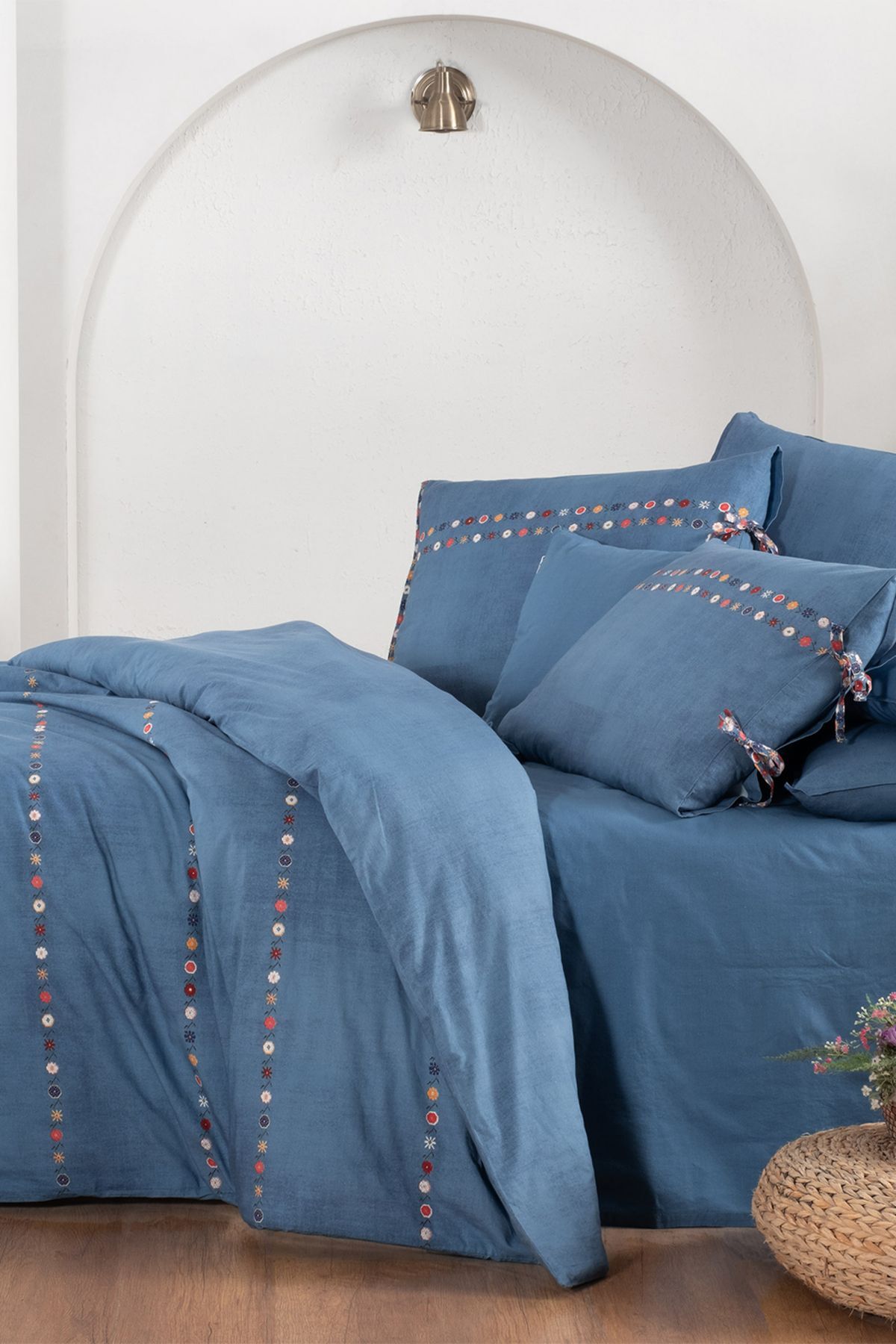 Sarev Tanya Fancy Poplin Nevresim Takımı Tek Kişilik-Mavi