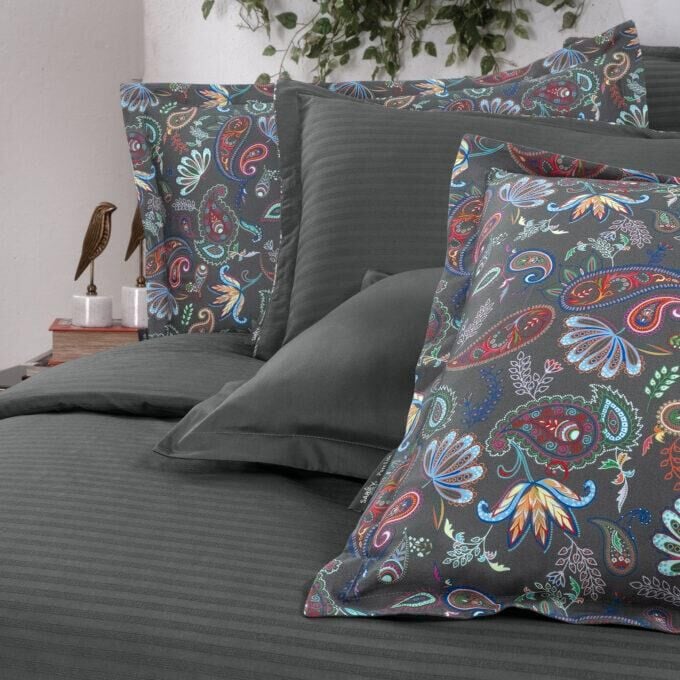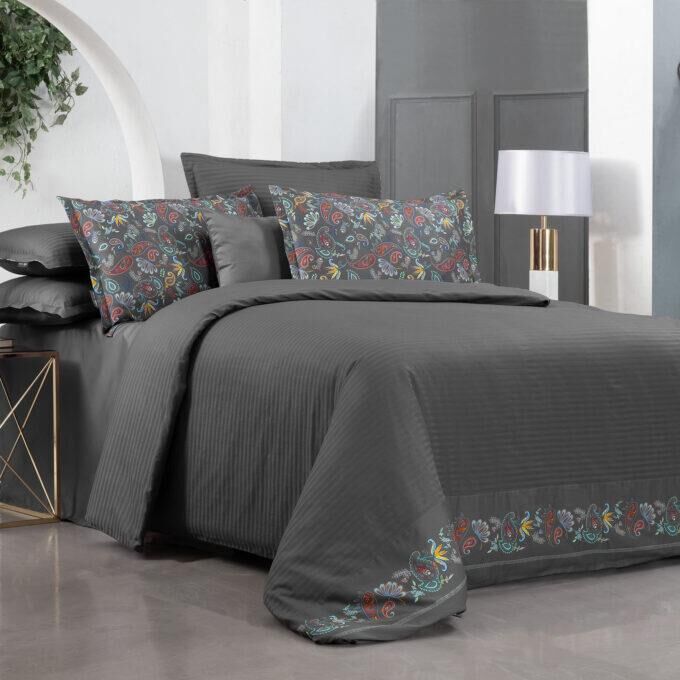 Sarev Tirol Saten Nevresim Takımı Çift Kişilik 4 Yastık-Gri