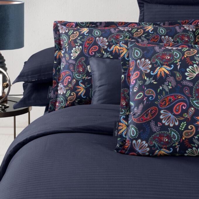 Sarev Tirol Saten Nevresim Takımı Çift Kişilik 4 Yastık-Lacivert