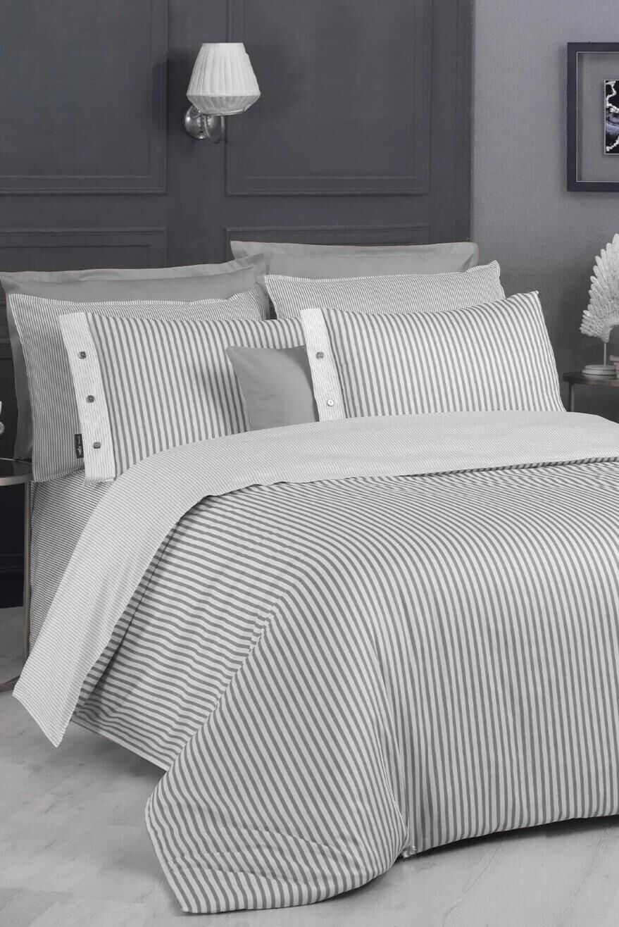Sarev Tommy Saten Nevresim Takımı Tek Kişilik 2 Yastık-Gri