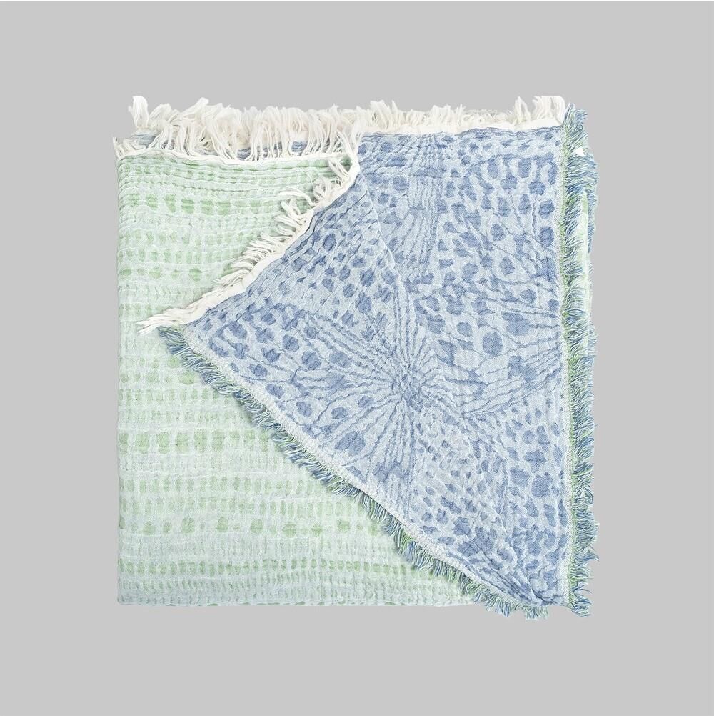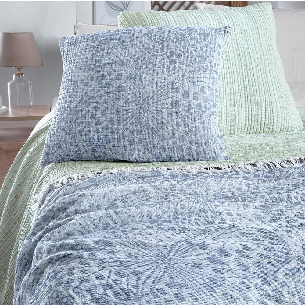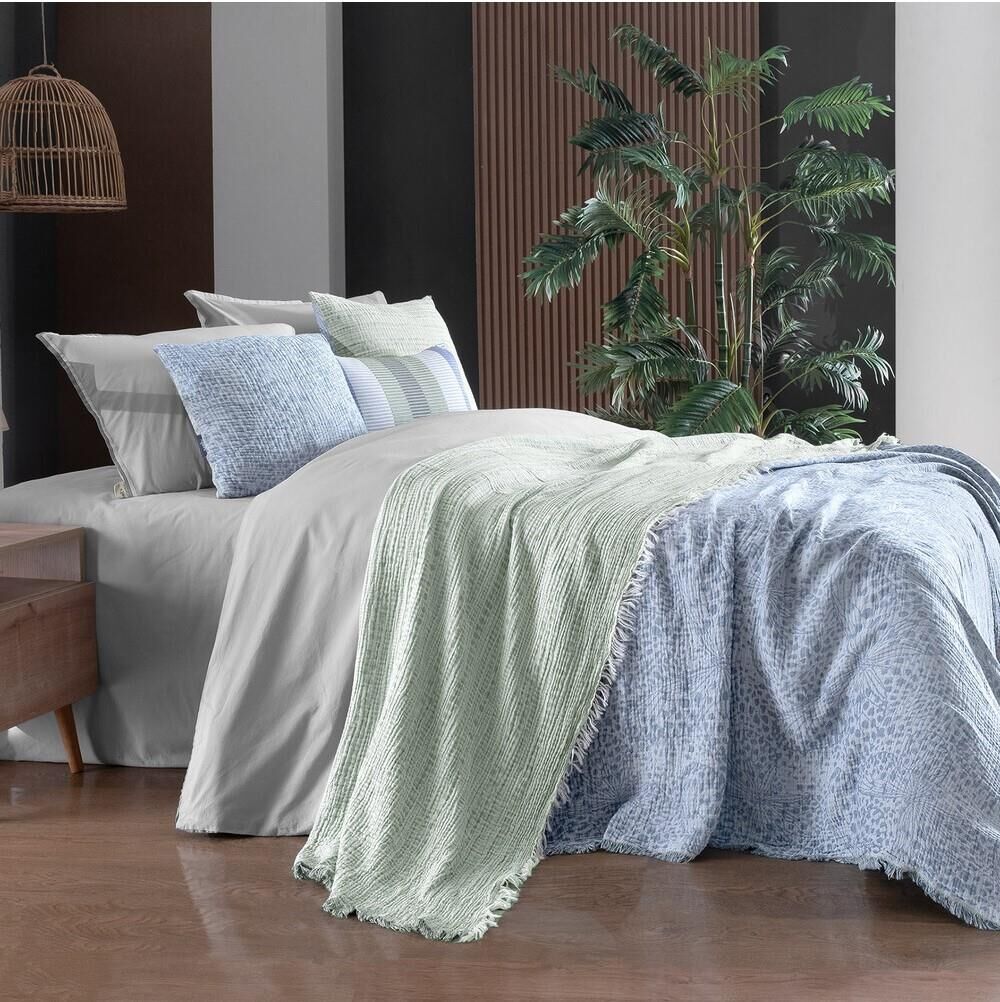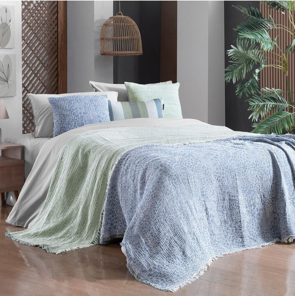 %100 Pamuk, jakarlı, ipliği boyalı, yıkamalı, müslin yatak örtüsü.