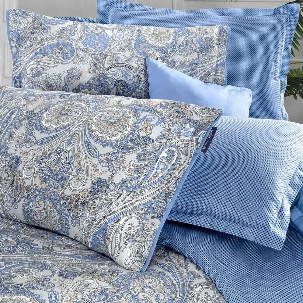 Sarev Volga Saten Nevresim Takımı Çift Kişilik 4 Yastık-Mavi