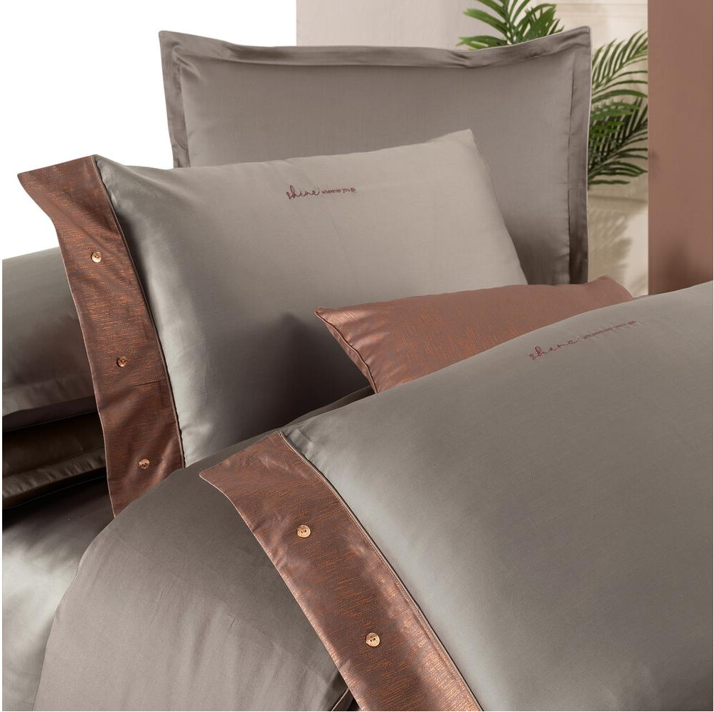 Sarev Voronej Saten Nevresim Takımı Çift Kişilik 4 Yastık-Bakır