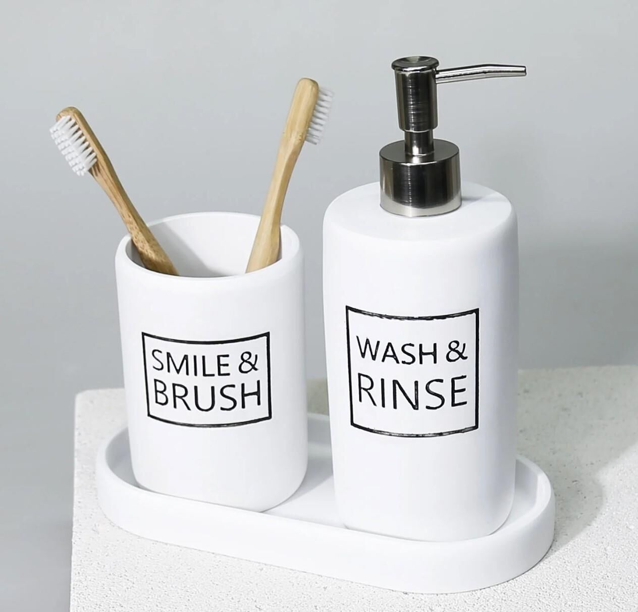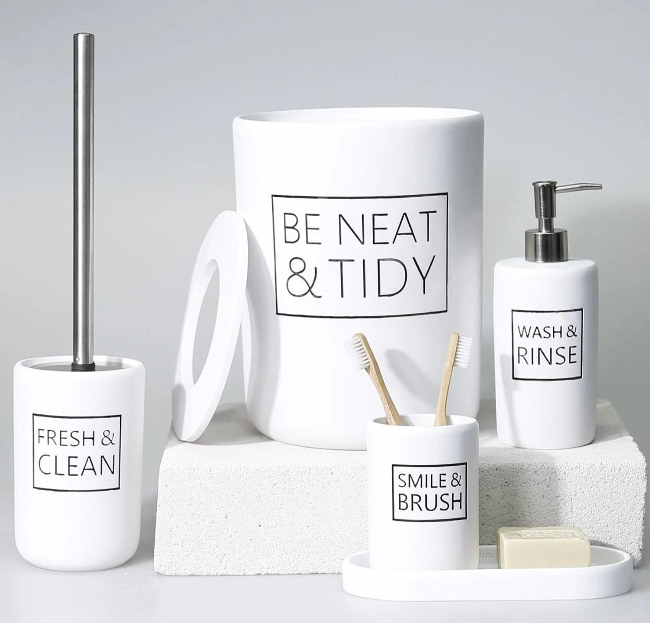 Clemente Banyo Setinin yazılı modern formu ve geniş işlevsel parçalarıyla, banyo dekorasyonunuzda minimal ve çağdaş etki yaratın. Bu setin özel tasarlanan kapağı sayesinde, atıklarınızı koymak için kapağı açmanızı gerektirmeyecek, içindekileri göstermeyen yapısı sayesinde estetik görünüm sağlar. Tamamen el işçiliğiyle üretilen bu setin oval tepsisini havlu, koku ve katı sabunlarınız için kullanabilir, ya da sıvı sabunluk ve diş fırçalığı koyarak lavabonuza dekoratif bir dokunuş katabilirsiniz.