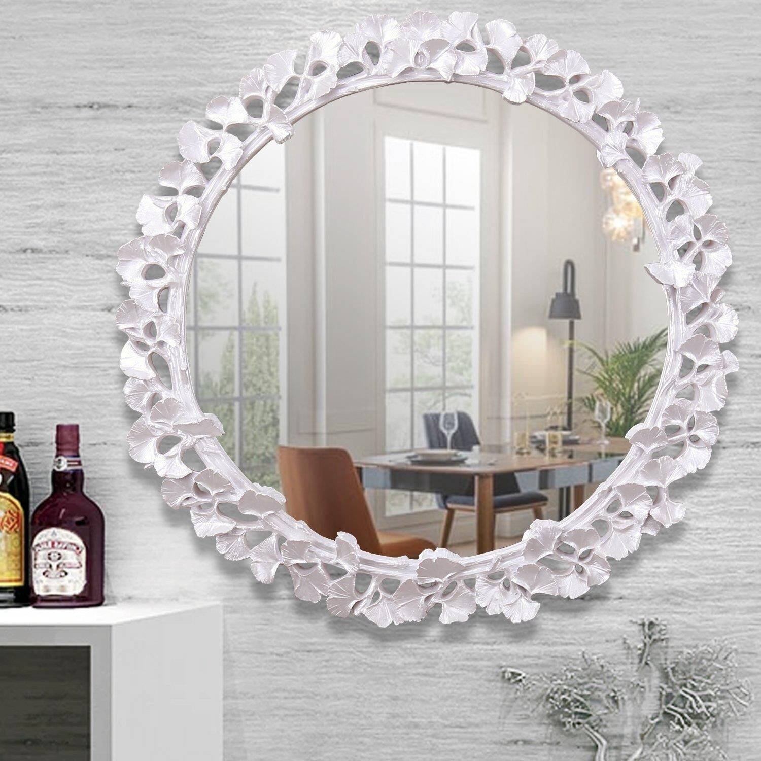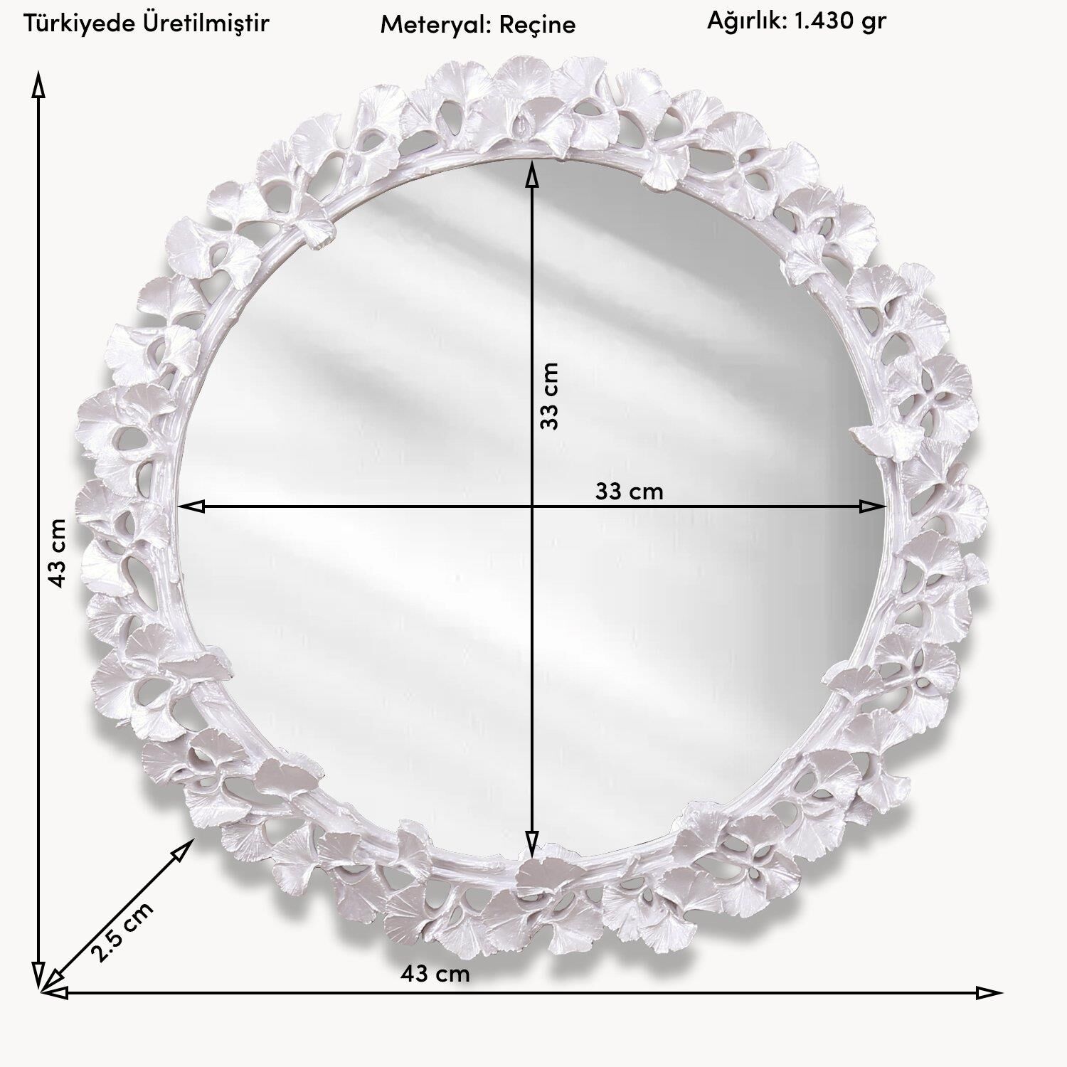 Clove yuvarlak ayna, sarmaşık figürleri ve modaya uygun stil yansıtan tasarıma sahip, evinizin veya ofisinizin çekiciliğini artıran zamansız bir tasarıma sahiptir. Çerçevesinde yaprak ve dal figürleri oolan bu modern duvar aynasına, inci rengi parlak ve çekici bir görünüm sağlar.