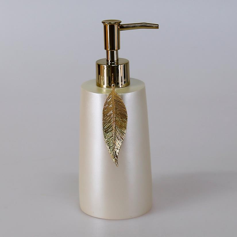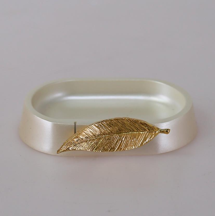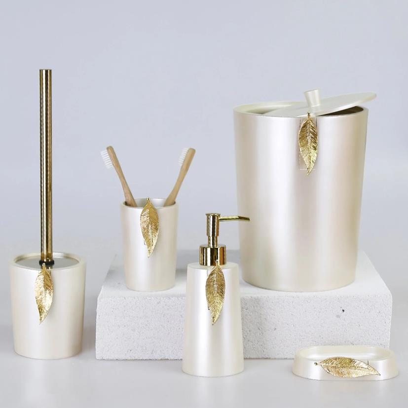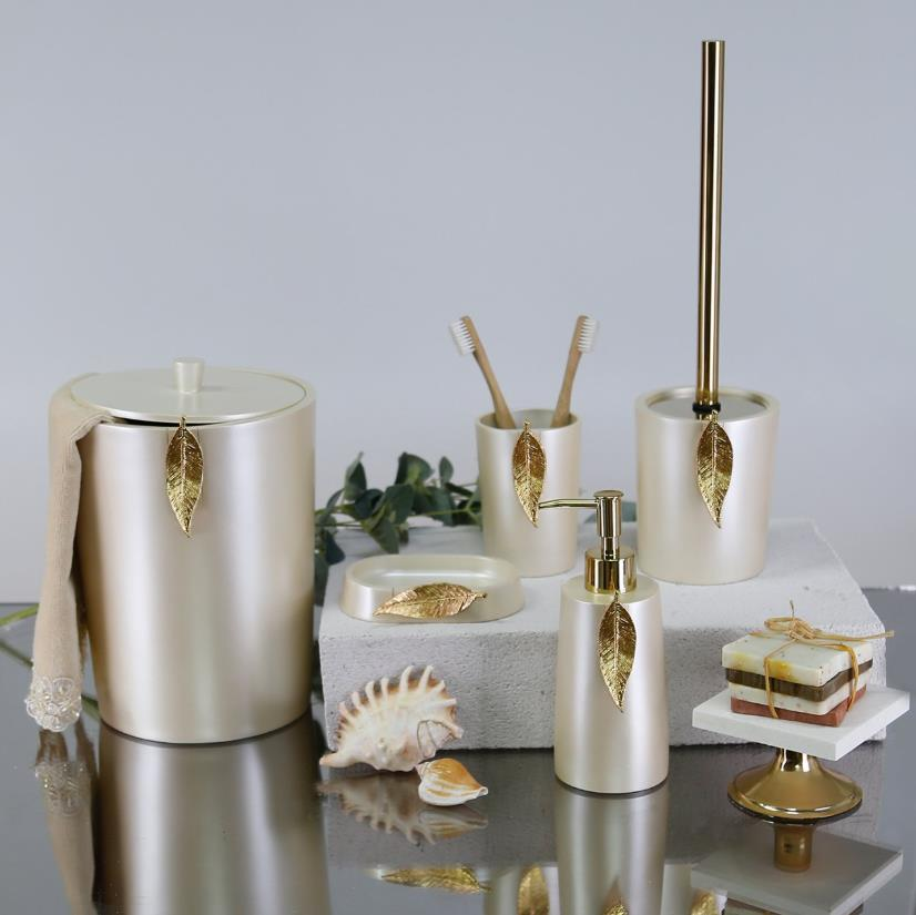 Selim Dekor Leaf Banyo Seti İnci-Altın