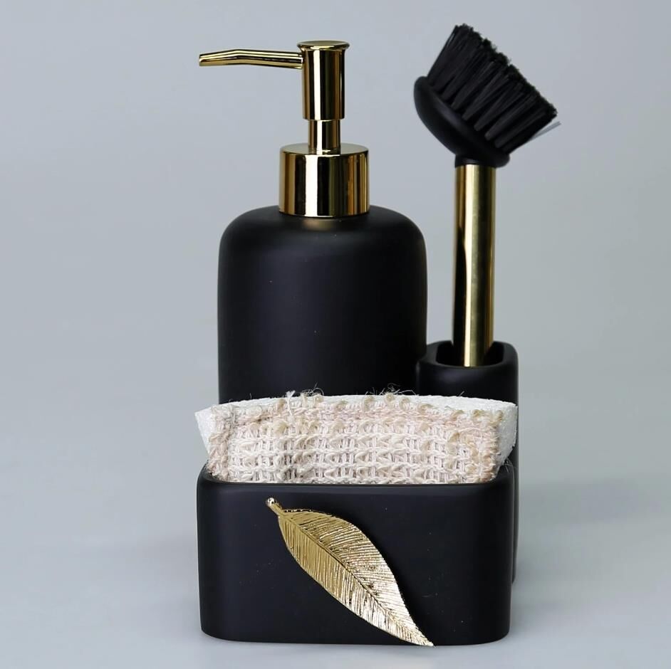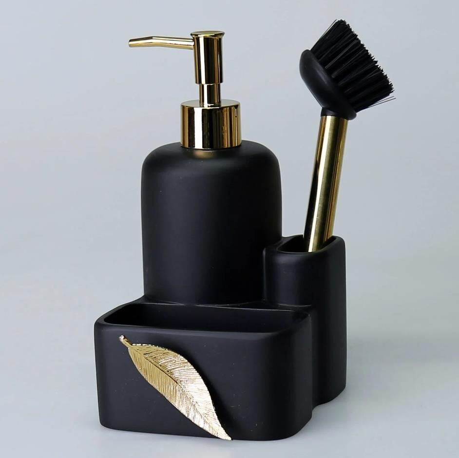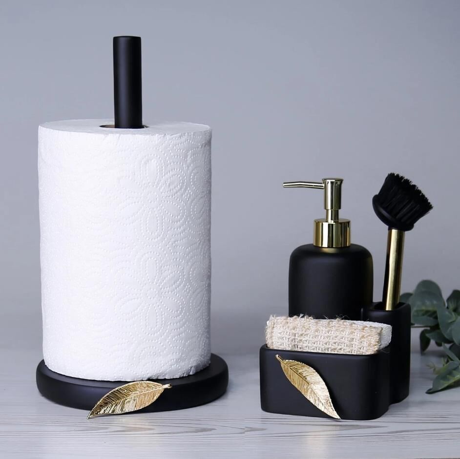 İçerisinde kendi fırçasını bulunduran Leaf fırçalı sıvılı süngerlik, geniş hacimli sıvı sabunluk tasarımı ve önündeki metalik yaprak figürü ile tezgahınızda dekoratif şıklığın yanısıra, pratik ve işlevsellik sağlar. El işçiliğiyle tasarlanan bu sıvı sabunluğu, kağıt havluluk ile birlikte satın alın.