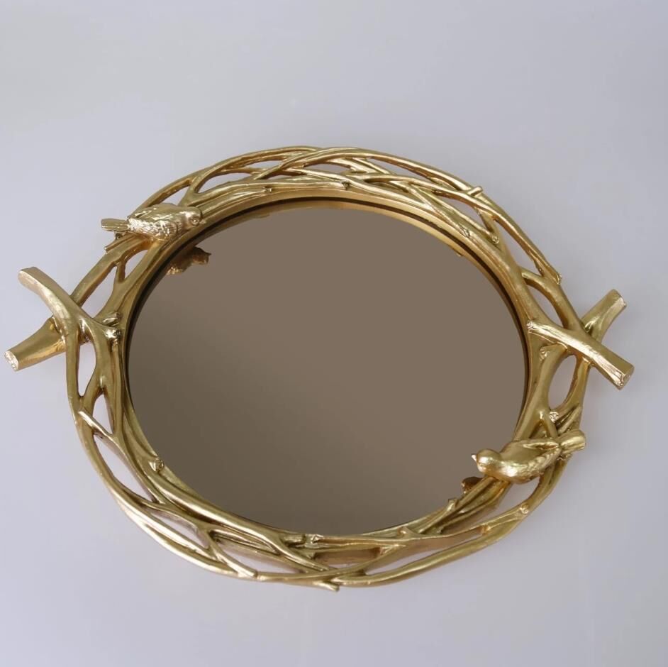 Selim Dekor Mavera Aynalı Tepsi Altın