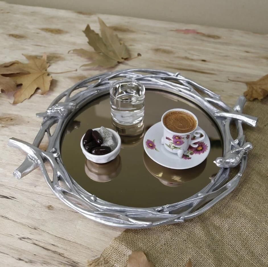 Selim Dekor Mavera Aynalı Tepsi Gümüş