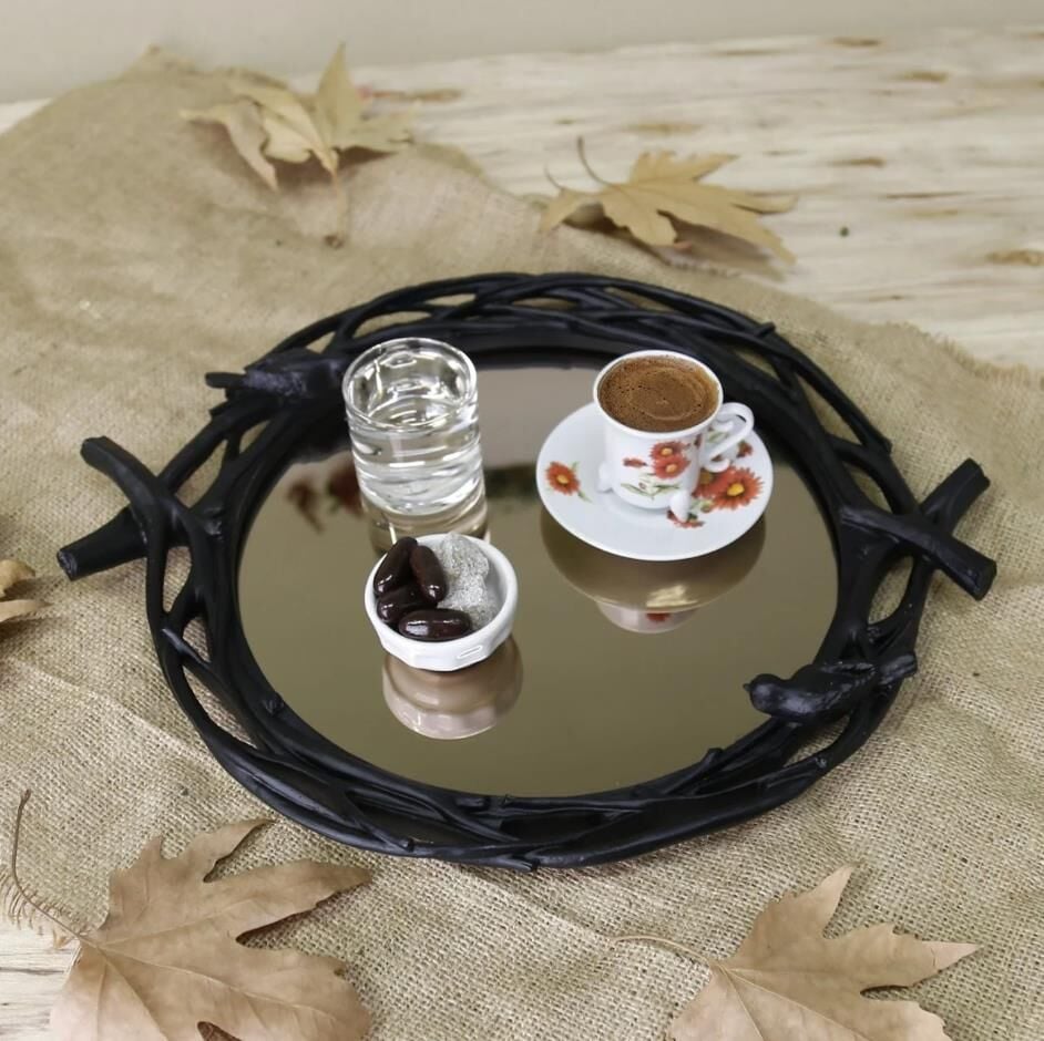Selim Dekor Mavera Aynalı Tepsi Siyah