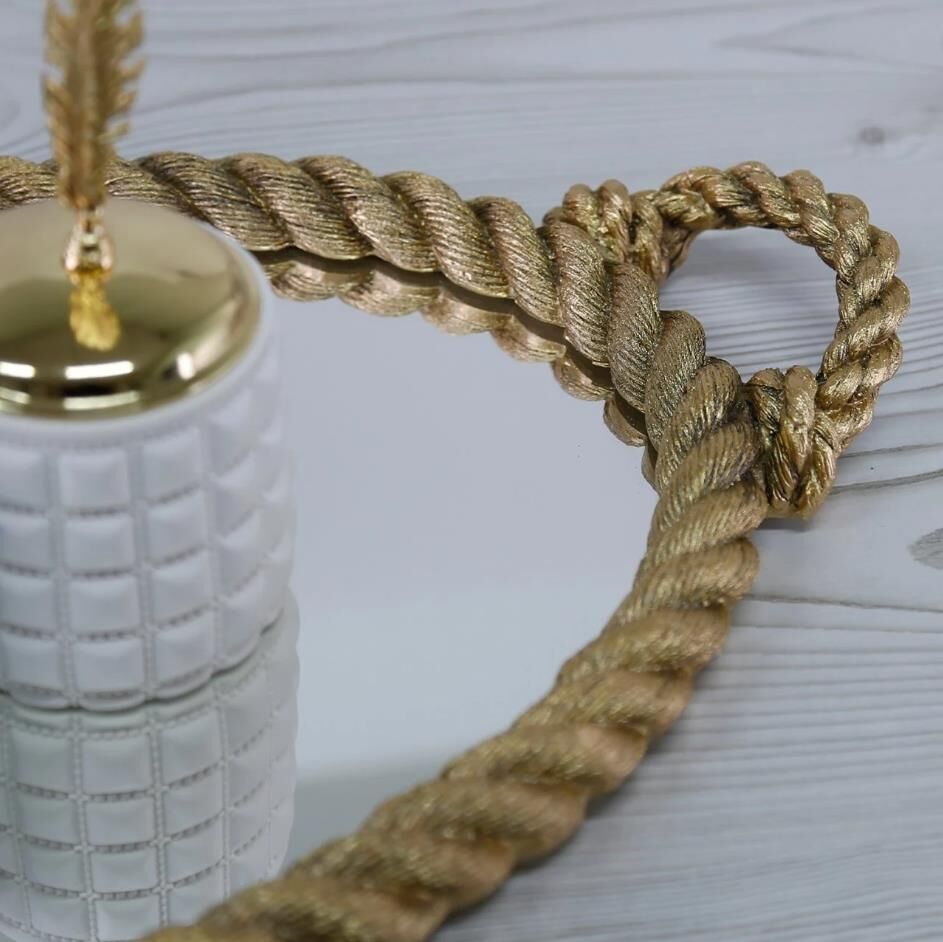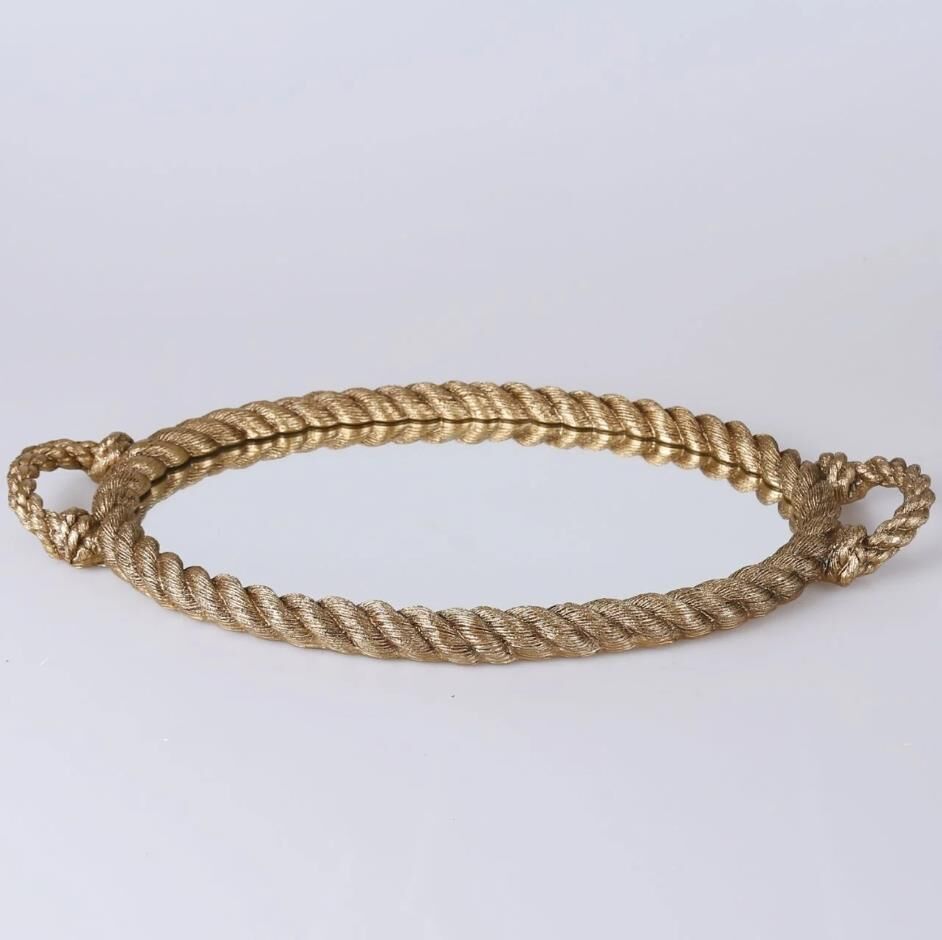 Halat görünümlü Rope aynalı tepsi, altın rengin ışıltısı ile evinize zerafet getirecek. Evinizde göz alıcı bir görünüm için bu oval tepsiyle, mum, çiçek ve diğer dekoratif objelerinizi sergilemek için harika bir dekor oluşturun ya da rope banyo setimizle birleştirerek konseptinizi tamamlayın.
