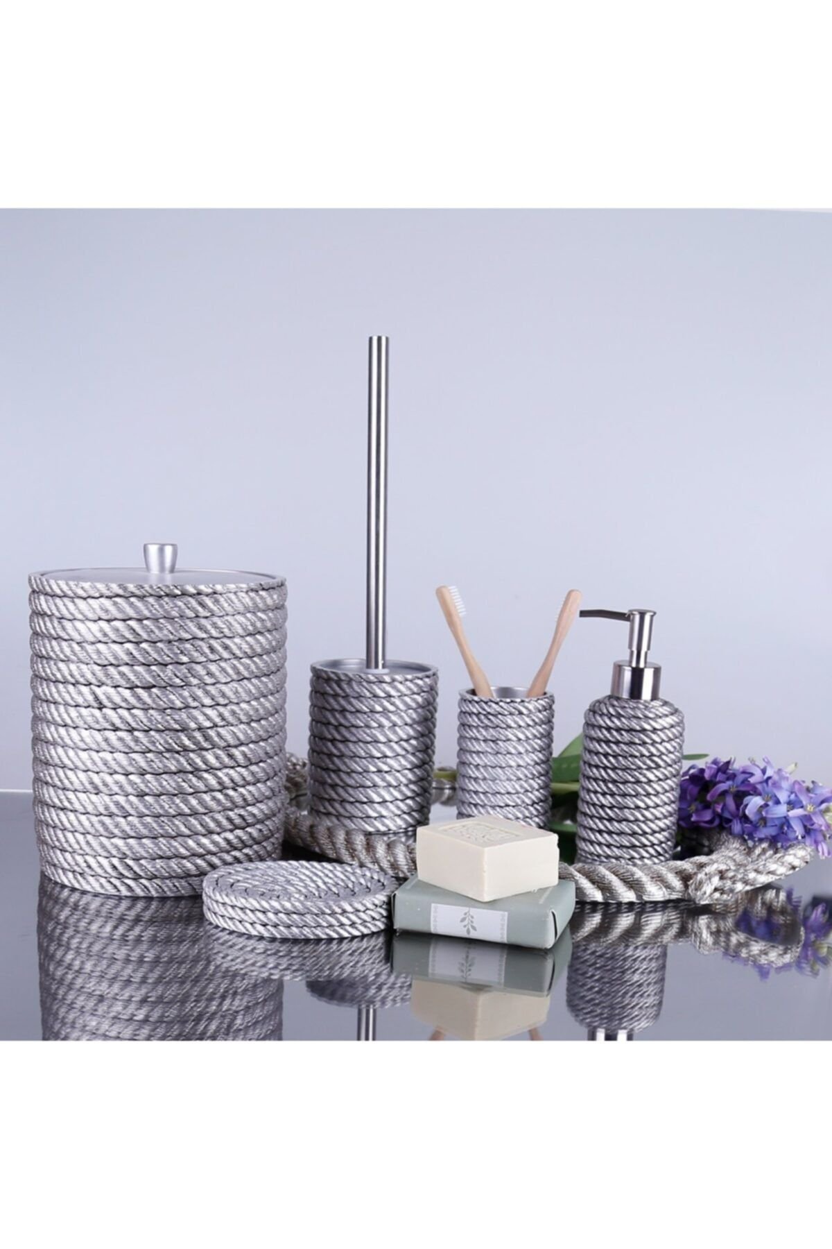 Selim Dekor Rope Banyo Seti Gümüş